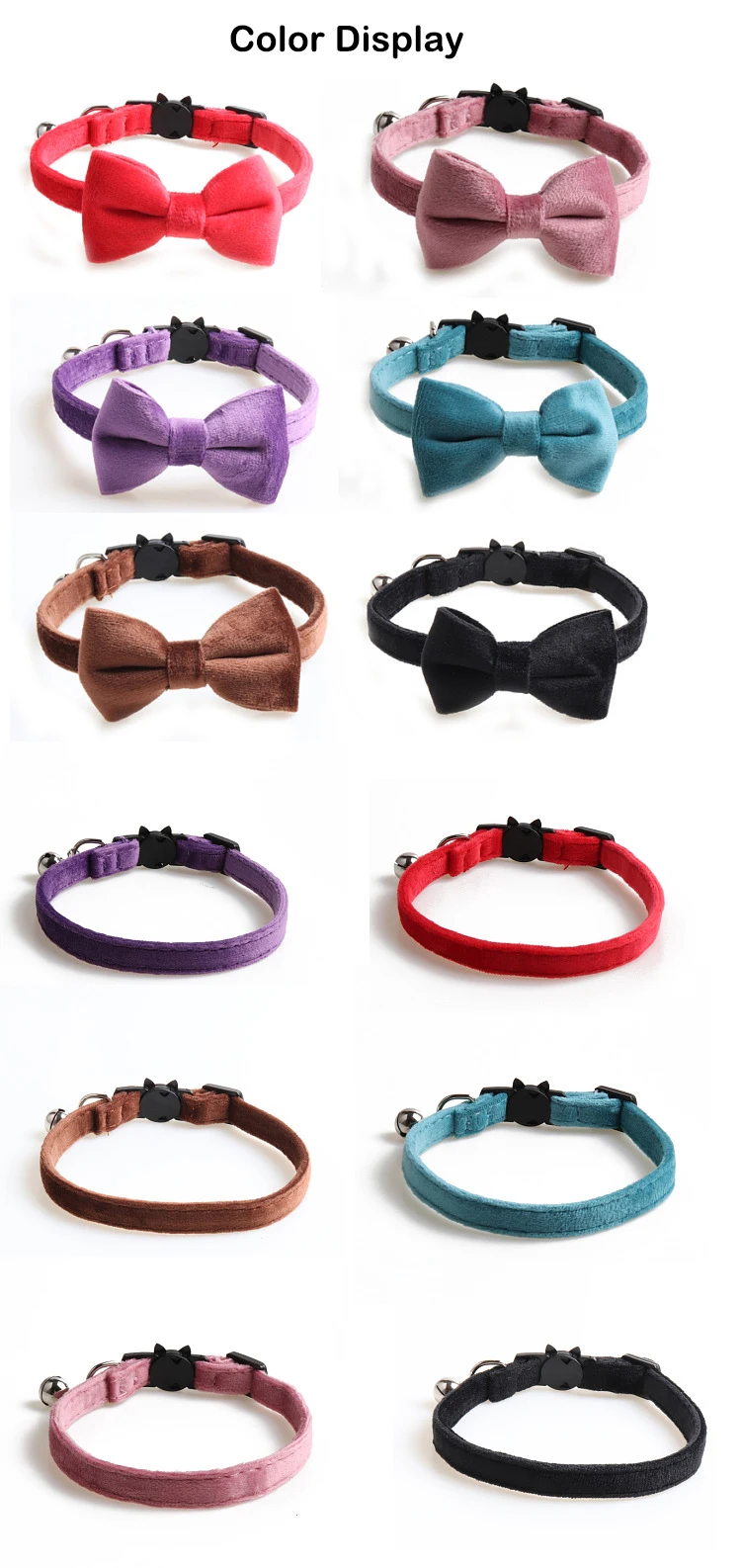 Ошейник для кошек с колокольчиком и бантиком, 6 цветов, регулируемая безопасная пряжка, бархатные мягкие ошейники с бантиком для кошки, котенка, собаки, щенка