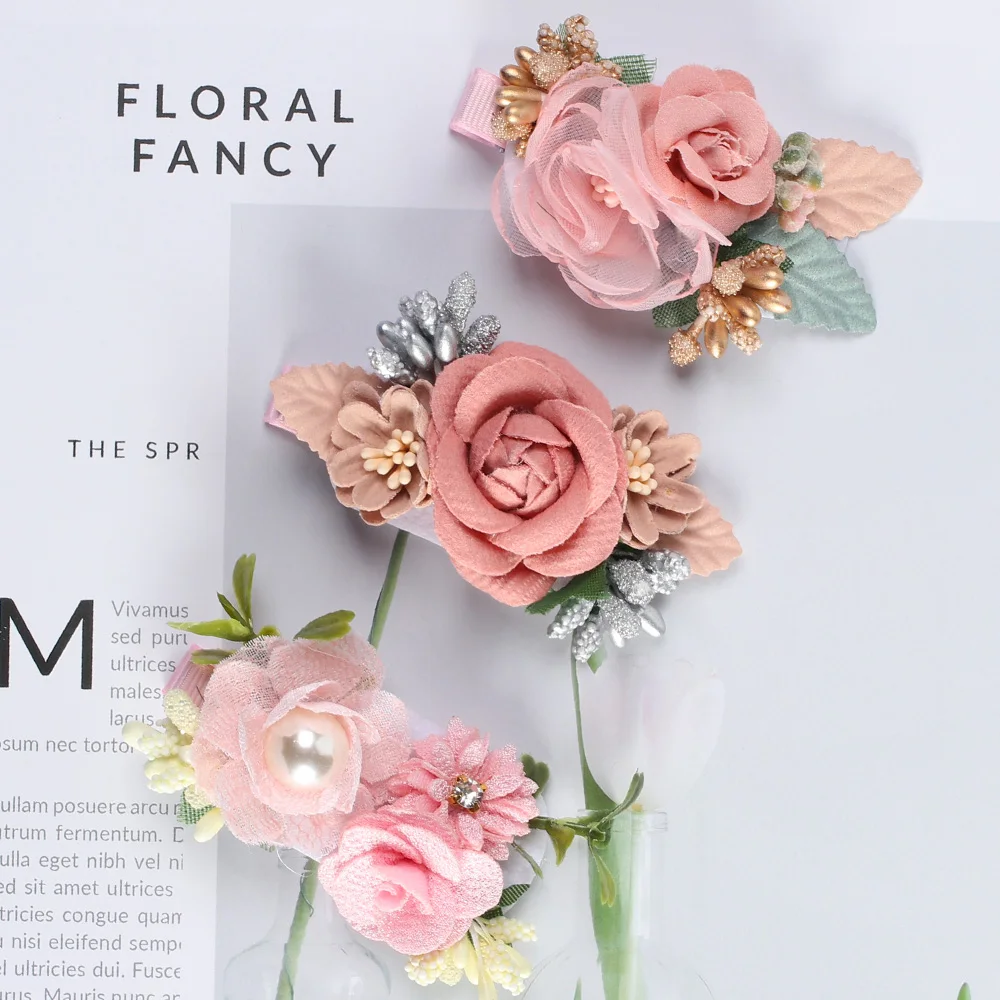 3 шт.компл. детские заколки с искусственными жемчужинами и цветами для девочек, заколки ручной работы для новорожденных, детские заколки, украшение для младенцев