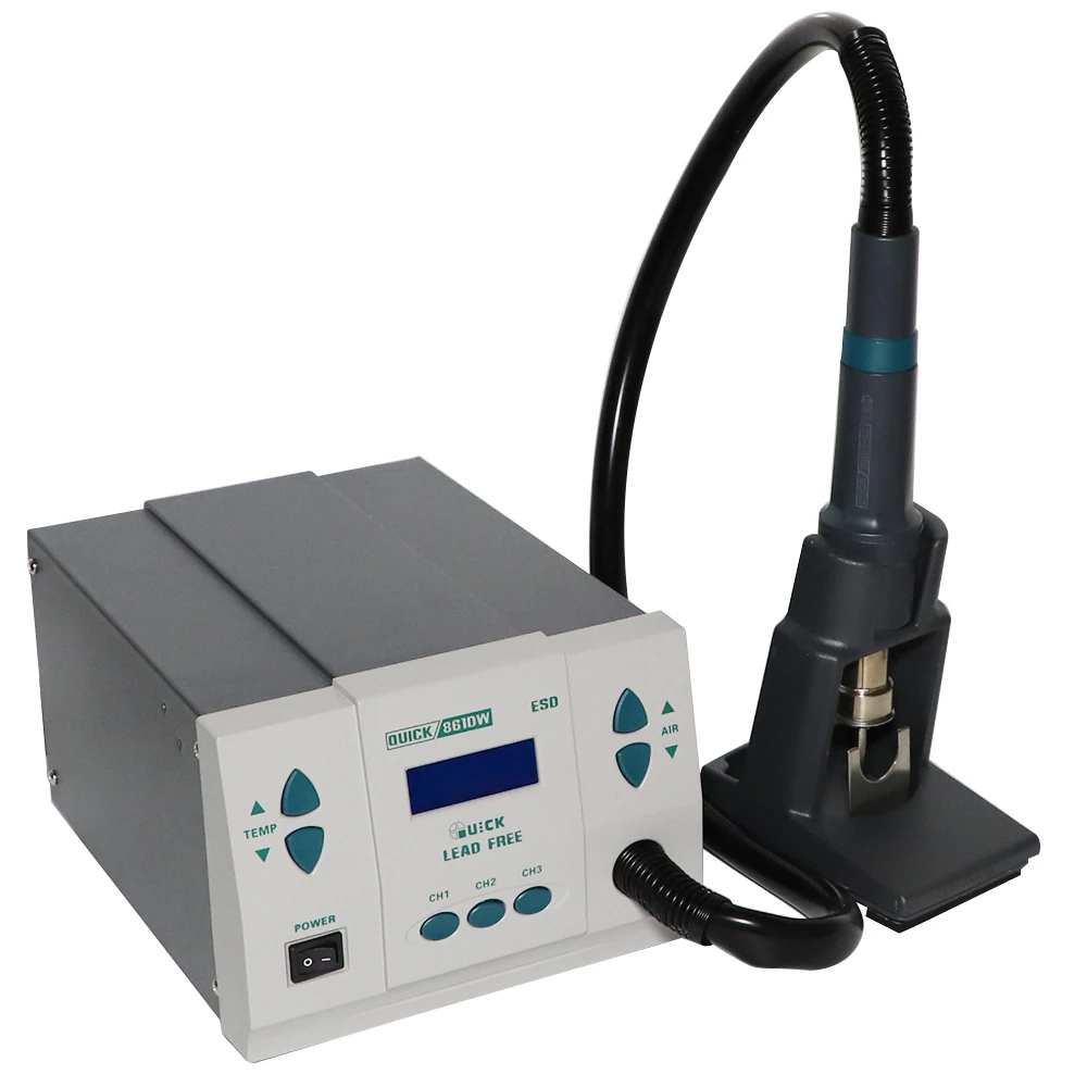 QUICK 861DW станция горячего воздуха-это новая Бессвинцовая паяльная станция, 861DW паяльная станция для ремонта мобильный телефон BGA, 1000 Вт/500 °C оригинальная паяльная станция горячего воздуха, с CH1, CH2, CH3 три рабочих канала