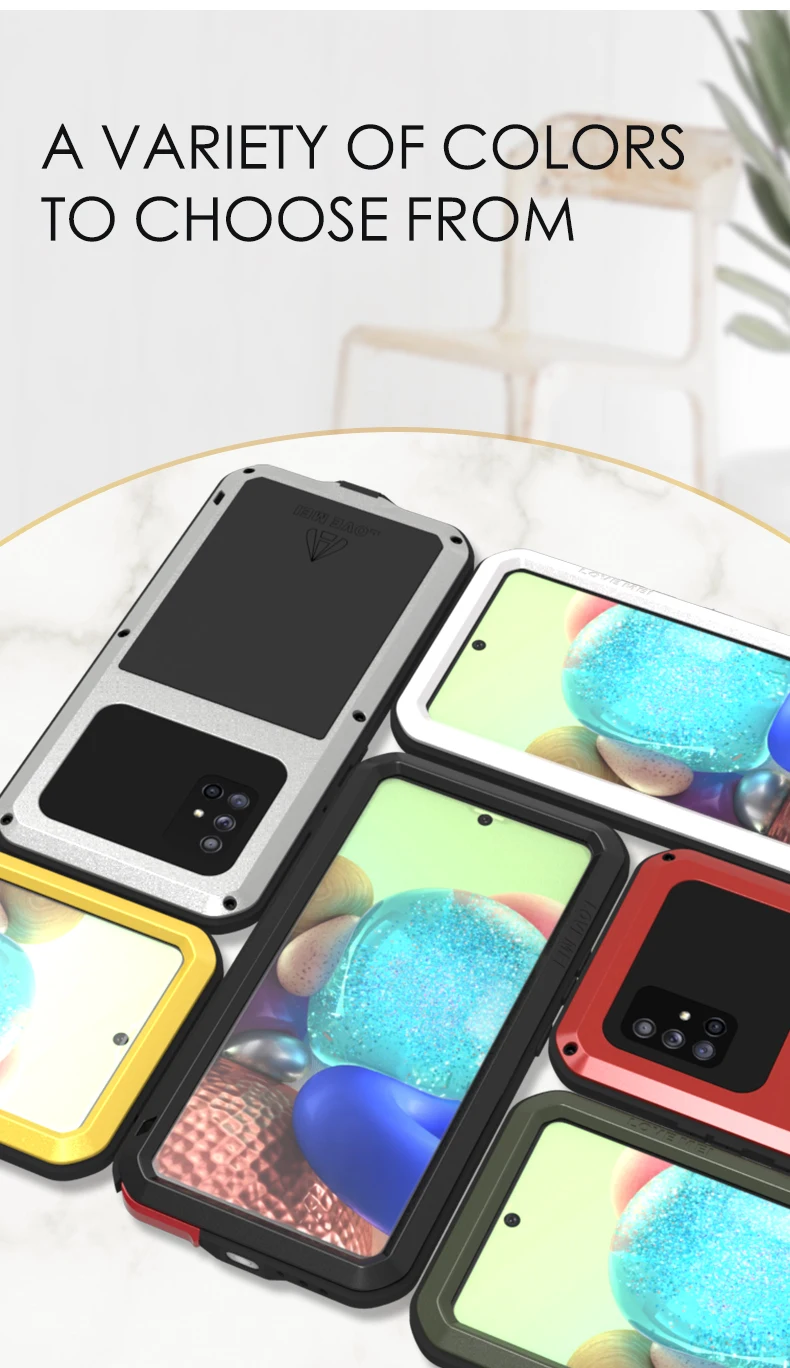 Описание: 1. Качество: 100% оригинал, высокое качество 2. Модель: Идеально подходит для Samsung Galaxy A71 5G/Samsung Galaxy A51 5G 3. Функция: Отличная защита от грязи, царапин и повреждений 4. Характеристика: оригинальный брендовый водонепроницаемый ударопрочный алюминиевый чехол для Samsung 5. Сервис: настоящая Бесплатная доставка + Быстрая отправка + быстрый ответ + индивидуальный дизайн Поддержка прямых поставок! Оптовые большие скидки! 2 шт. и более, получите большую скидку в 3%