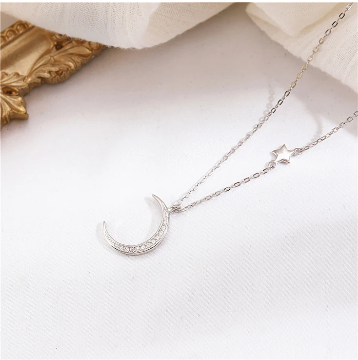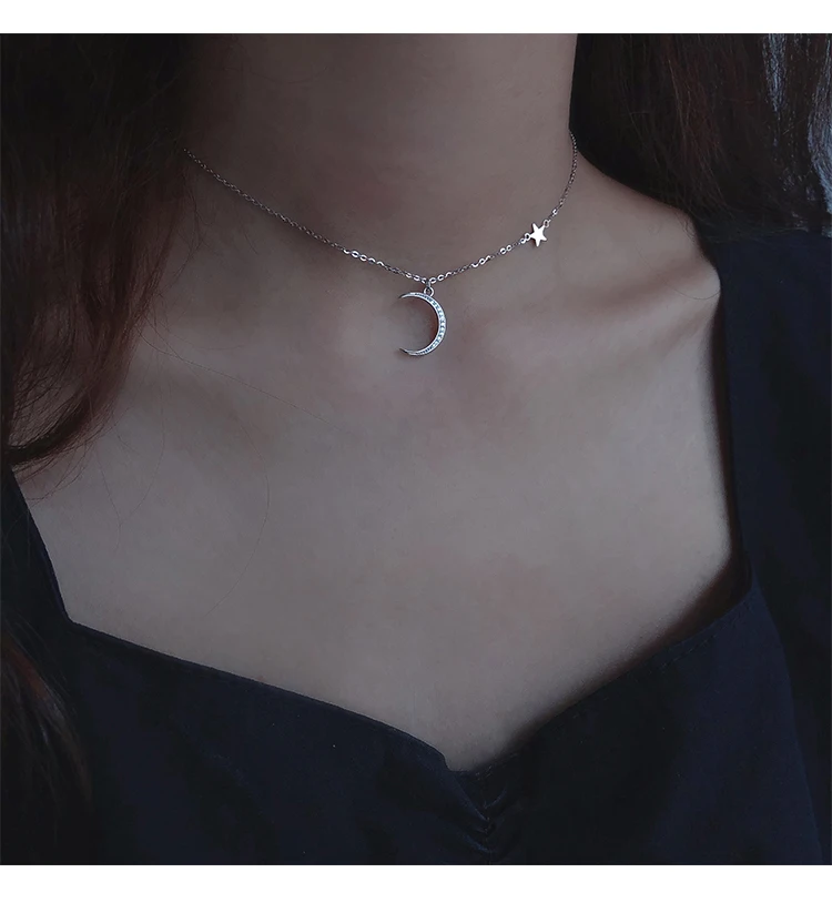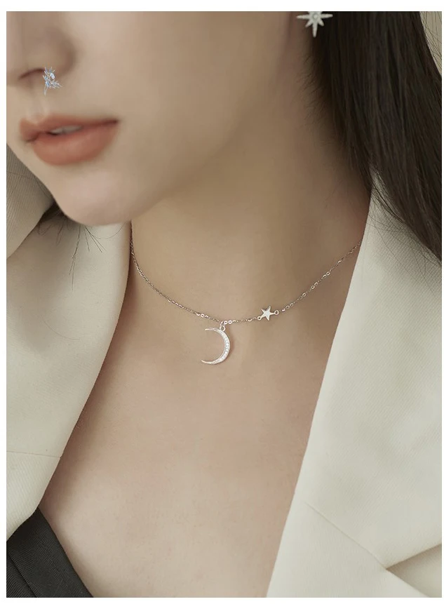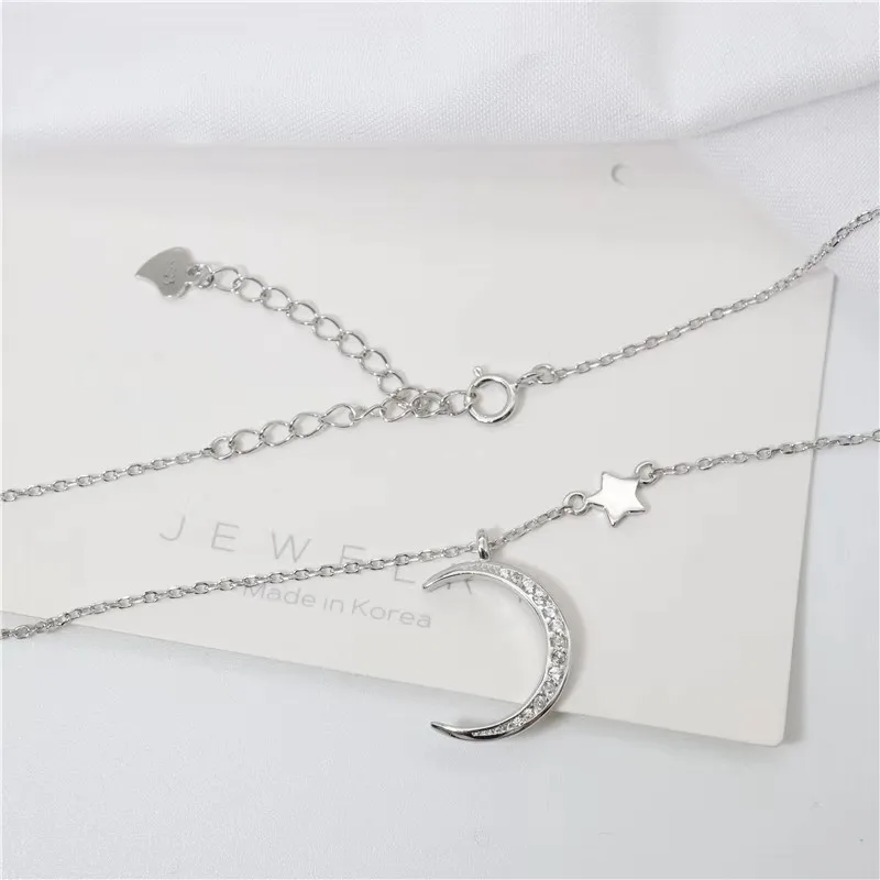 925 стерлингового серебра Луна, Звезды, ожерелье "Звездная пыль" дл...