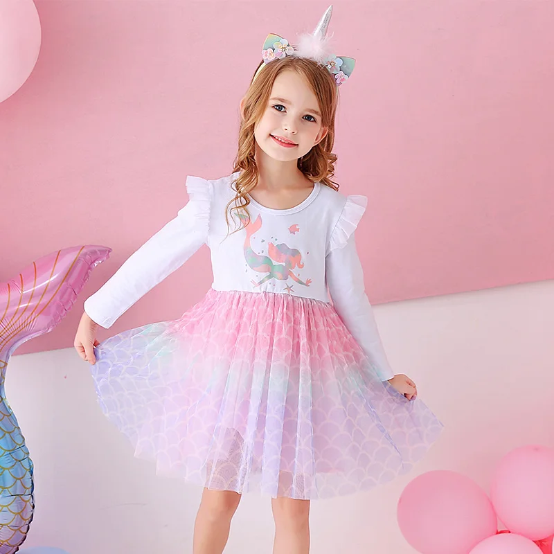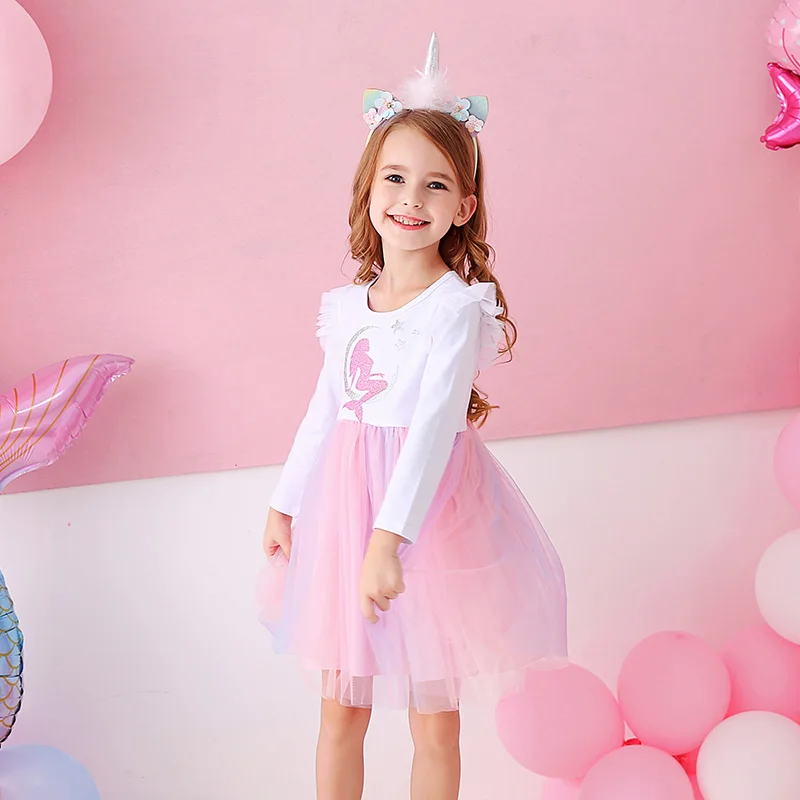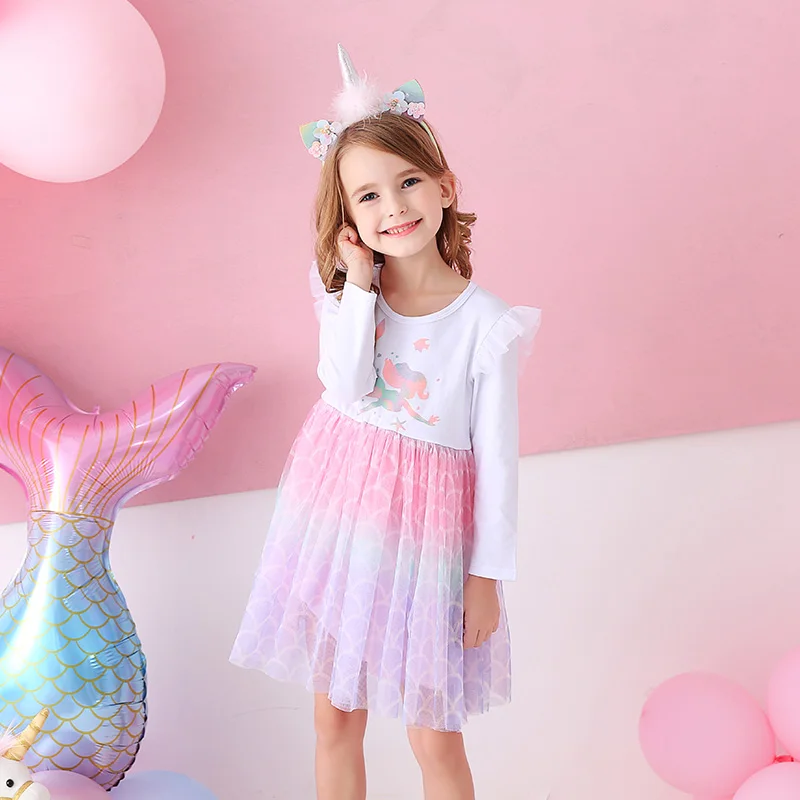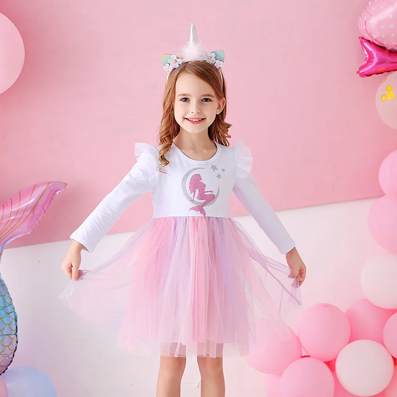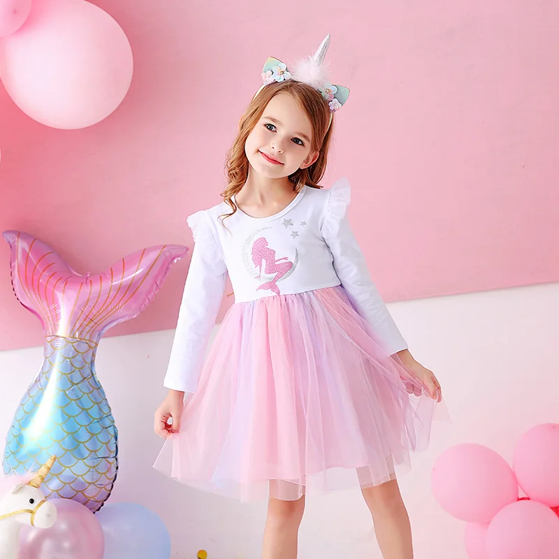 VIKITAДетское платье-пачка для девочек; Детская одежда; Платье принцессы с длинными рукавами и рисунком русалки; Детские Вечерние платья на день рождения для девочек