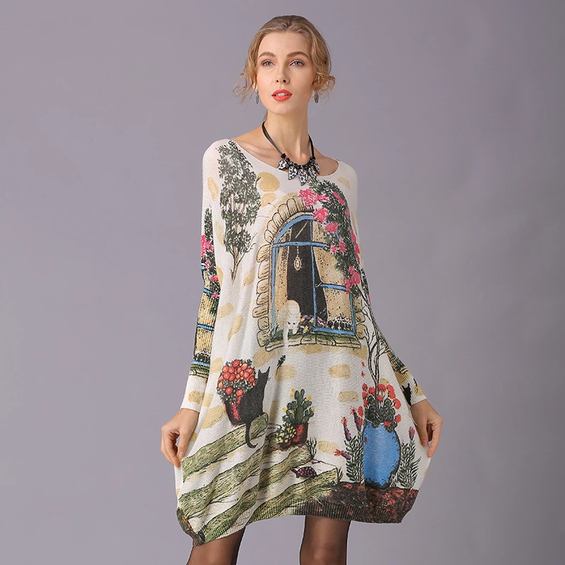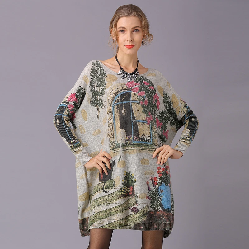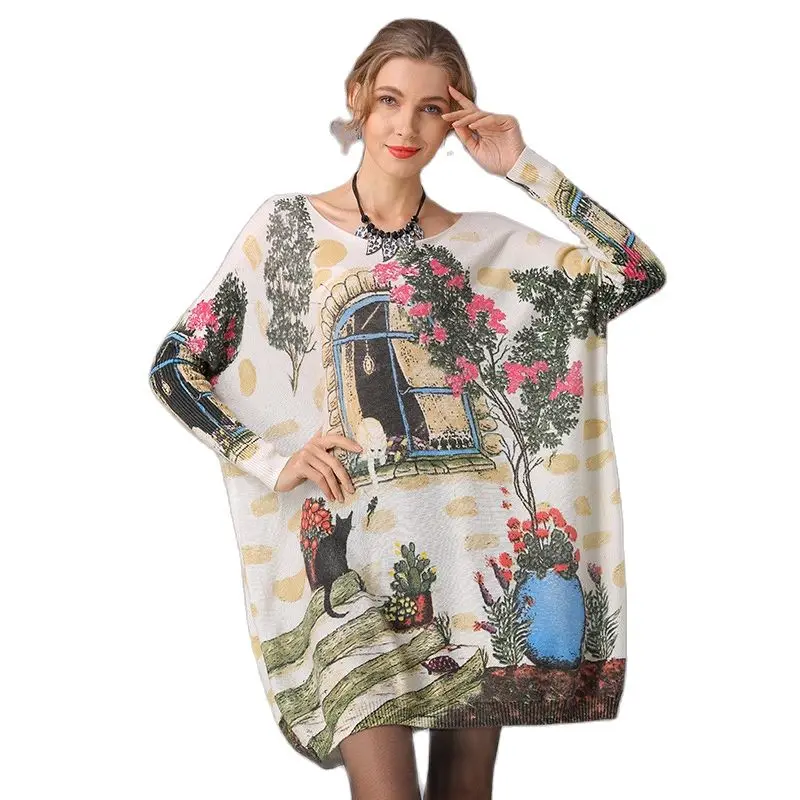 Женский свитер с принтом ARCSINX, Европейский свитер большого разме...
