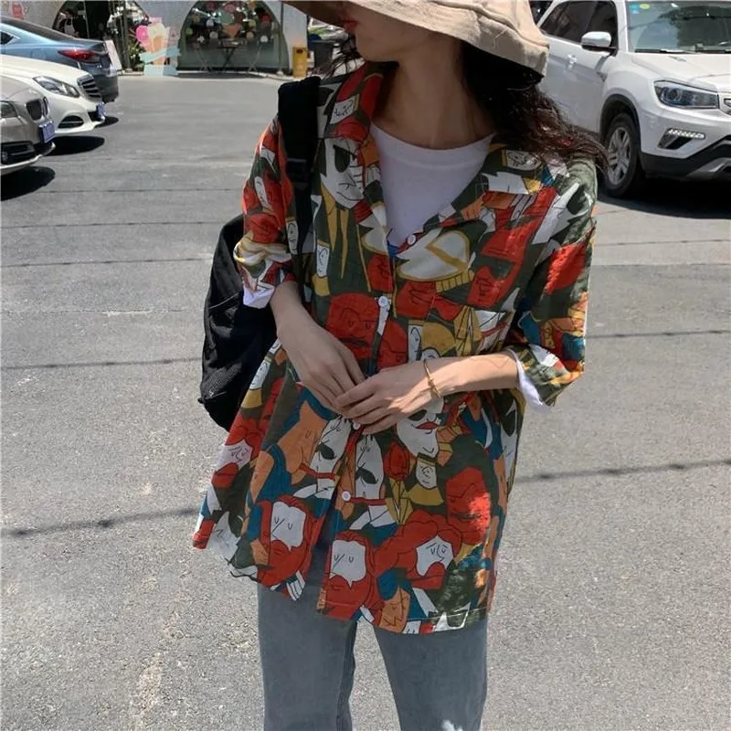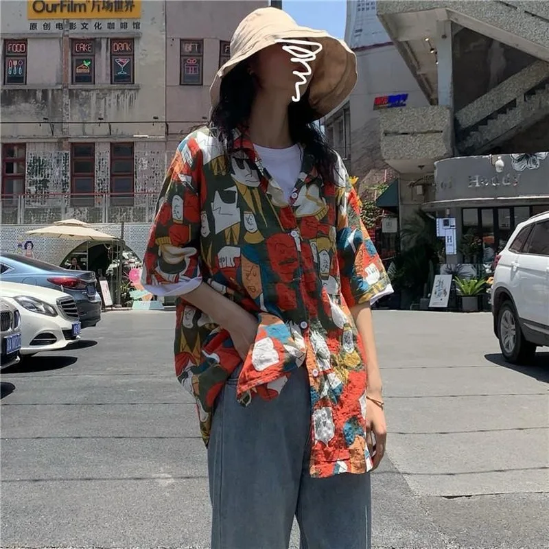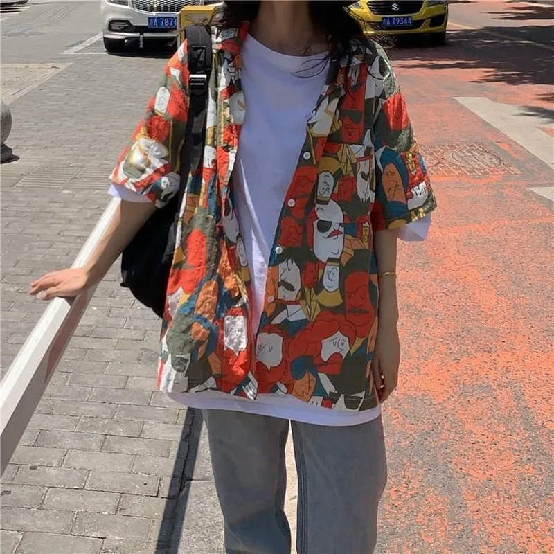 Женские винтажные рубашки с коротким рукавом в стиле хип-хоп, Корейская летняя уличная одежда 2020, повседневные блузки свободного кроя с забавным принтом, бойфренды, Новинка