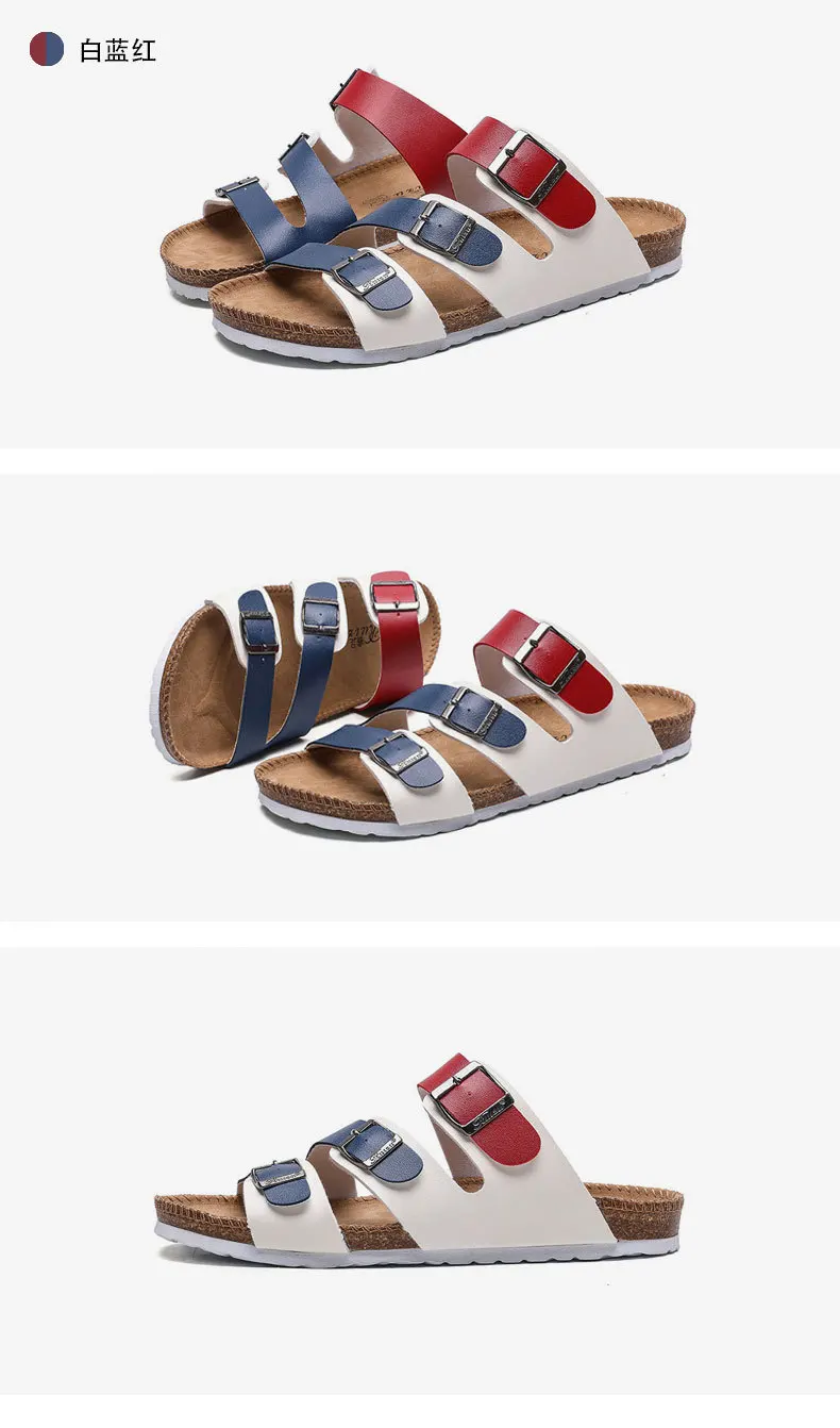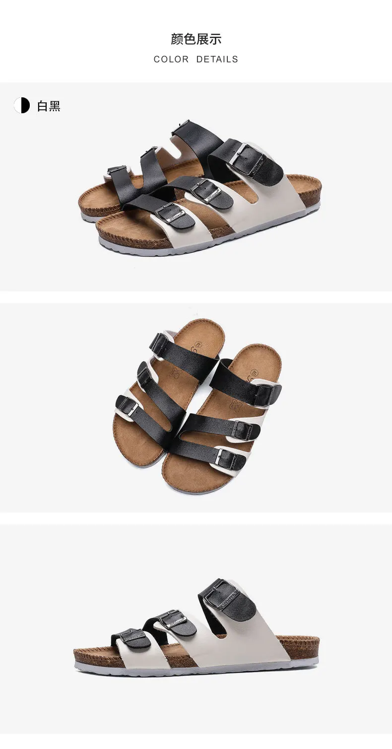 Шлепанцы с открытым носком для мужчин и женщин, сандалии с пробкой, пляжная обувь, Тапочки, белыйчерный цвет