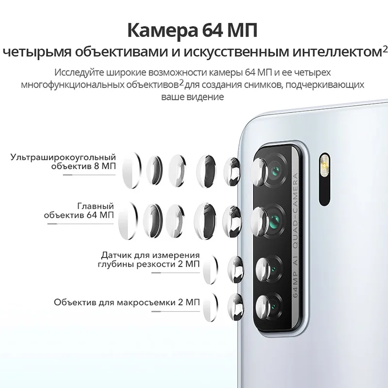 64 МП + 8 МП + 2 МП + 2 МП с ИИ