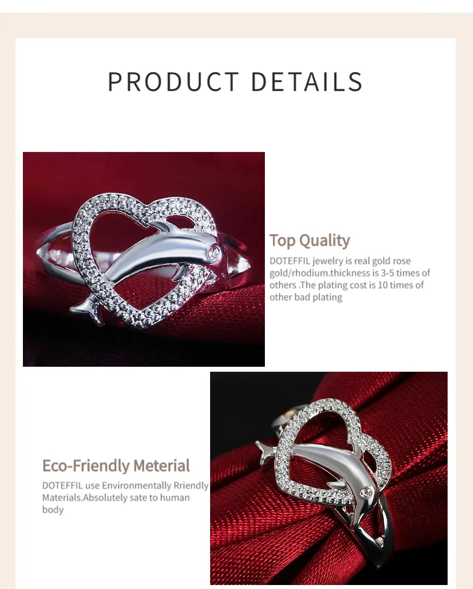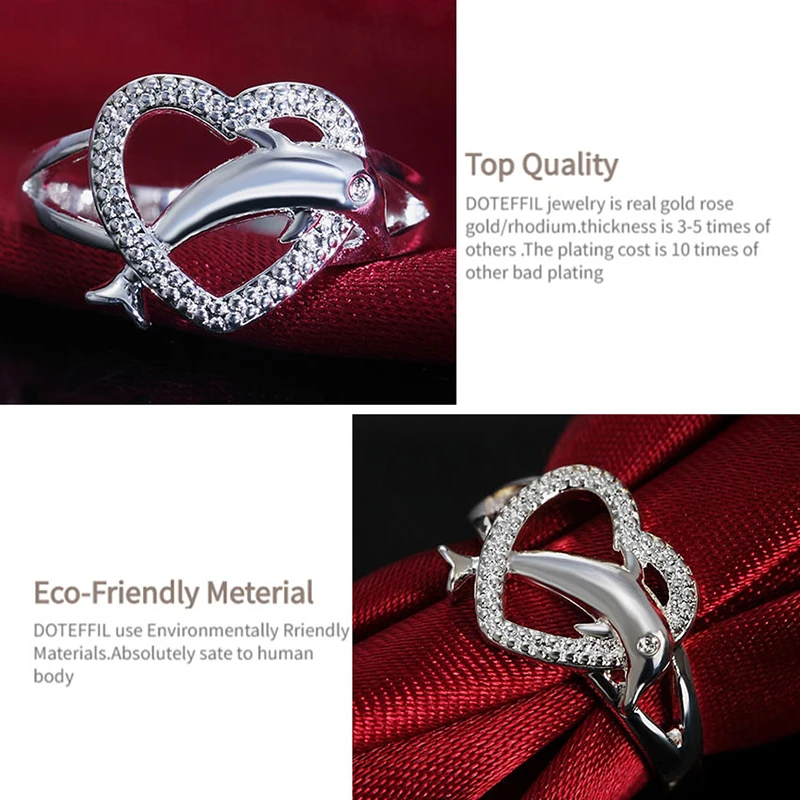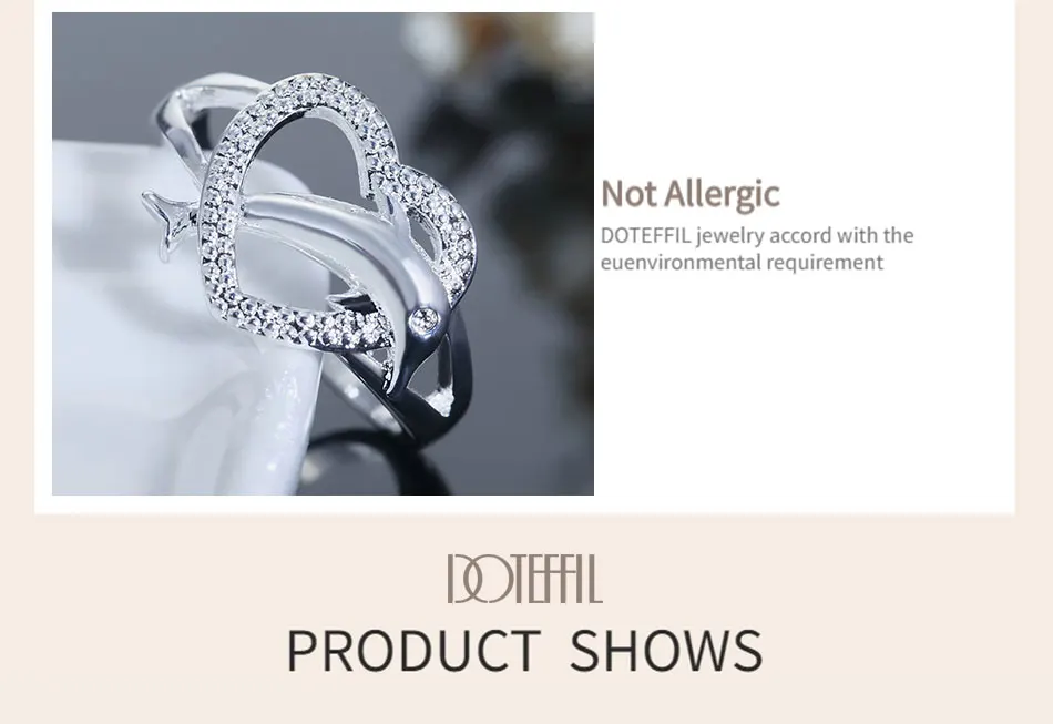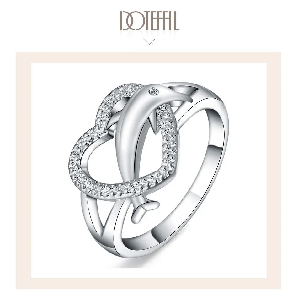 Кольцо DOTEFFIL из стерлингового серебра 925 пробы в форме сердца с дельфином из циркония класса ААА для женщин, Модная бижутерия для свадебной вечеринки, подарок, очаровательные ювелирные изделия