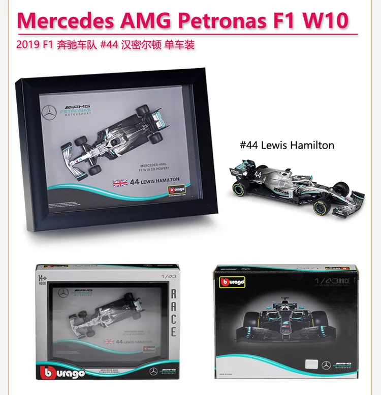 Модель автомобиля Mercedes Benz F1 W10 #44 W10 #77 1:43 с рамкой