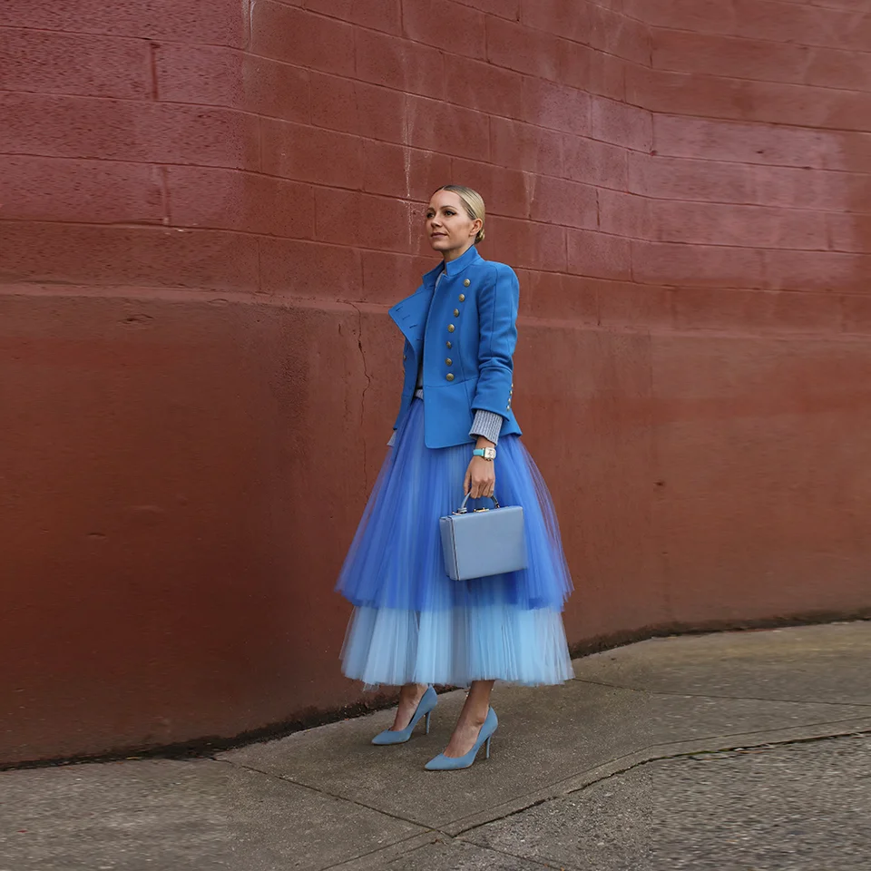 Милая синяя юбка длиной до щиколотки, трапециевидная юбка из тюля, повседневная юбка для вечевечерние НКИ в несколько рядов, летние женские юбки с эластичным поясом