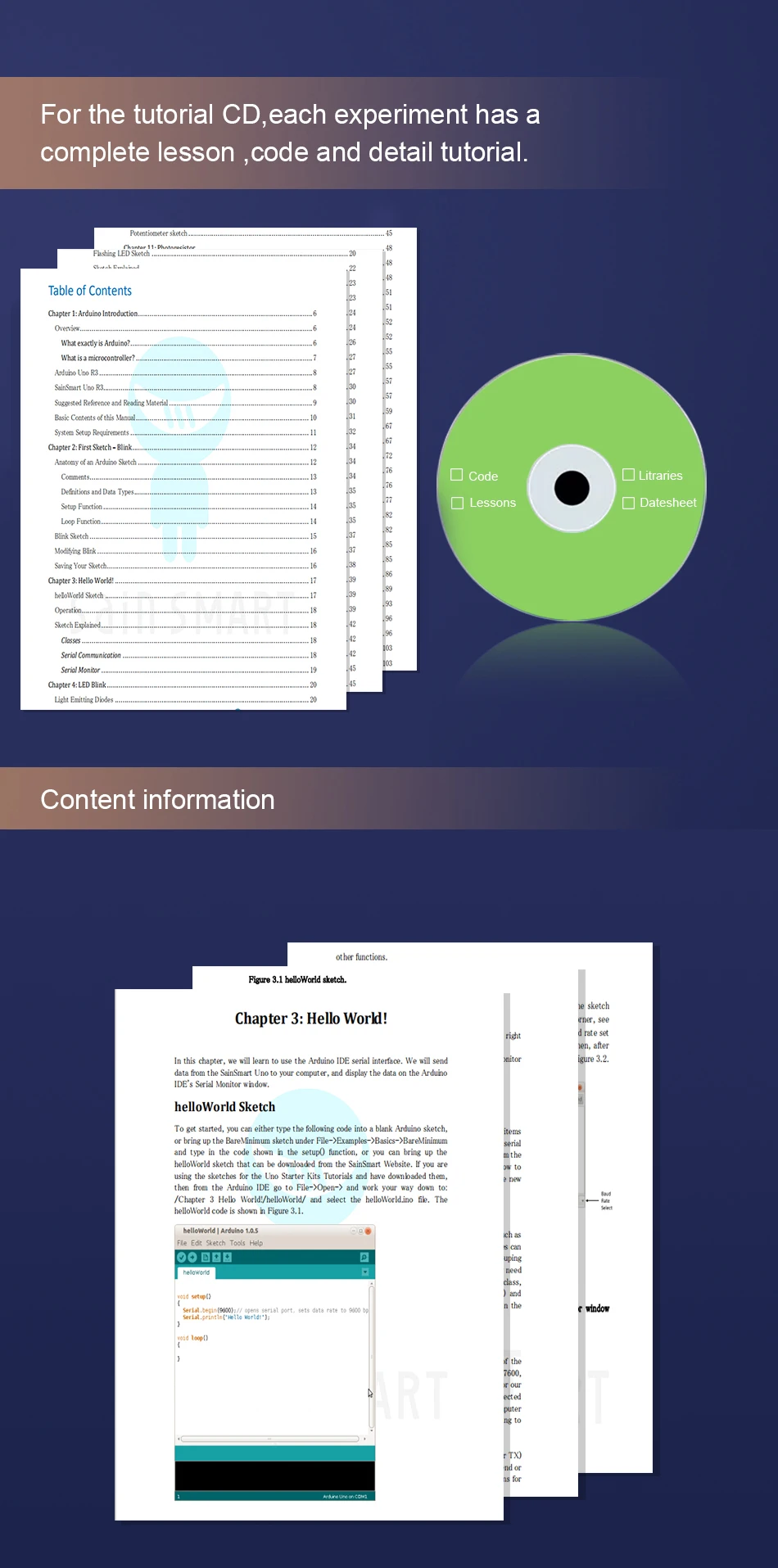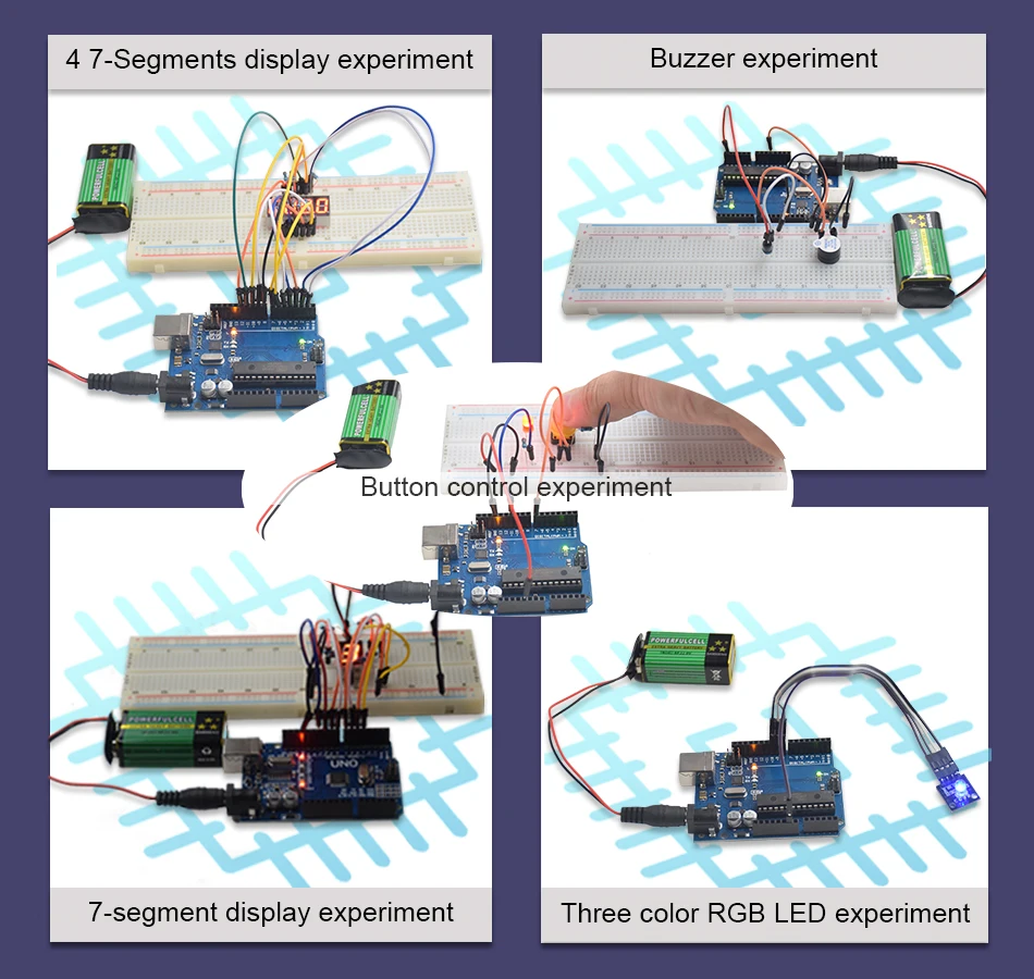 1X USB-кабель UNO R3 +;1X упаковка макетных перемычек;1х830 точек макетная плата;15xled (красный, зеленый, желтый);