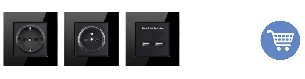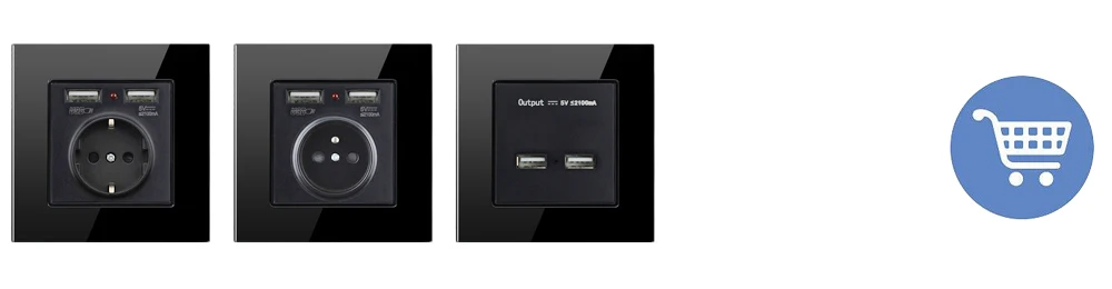 Настенная розетка с двумя USB-портами, из закаленного стекла