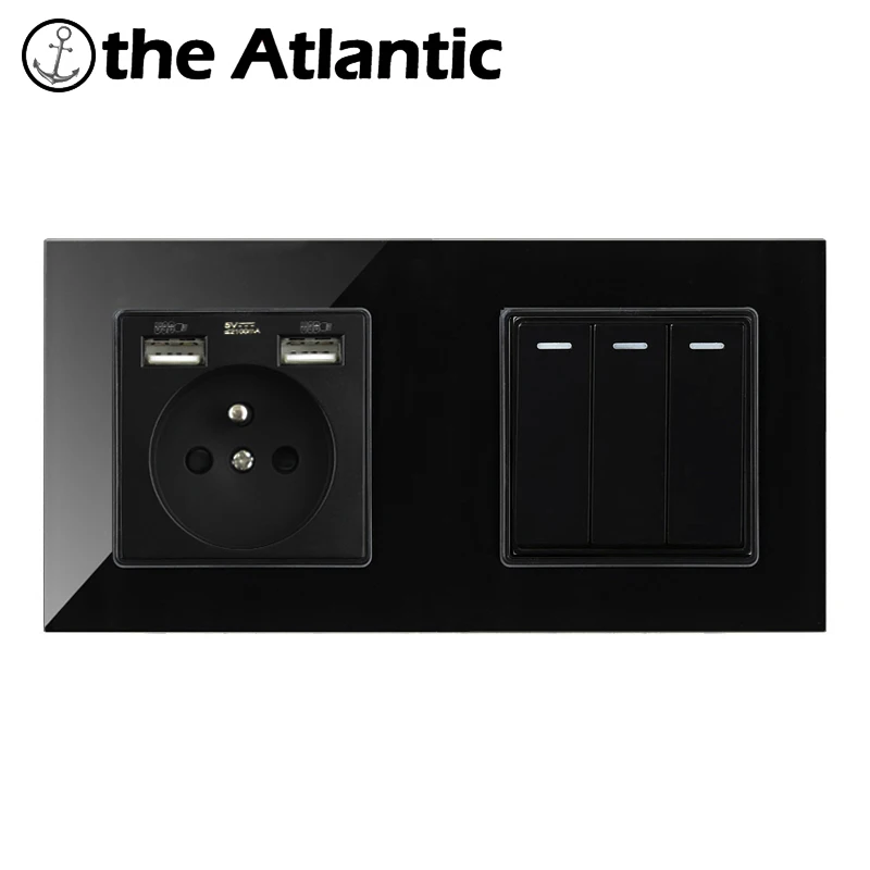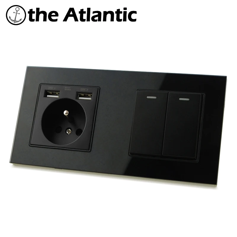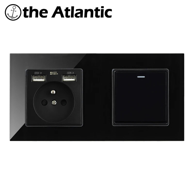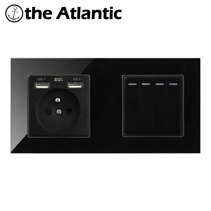 Черный пластиковый выключатель света, со стеклянной панелью и Usb-р...