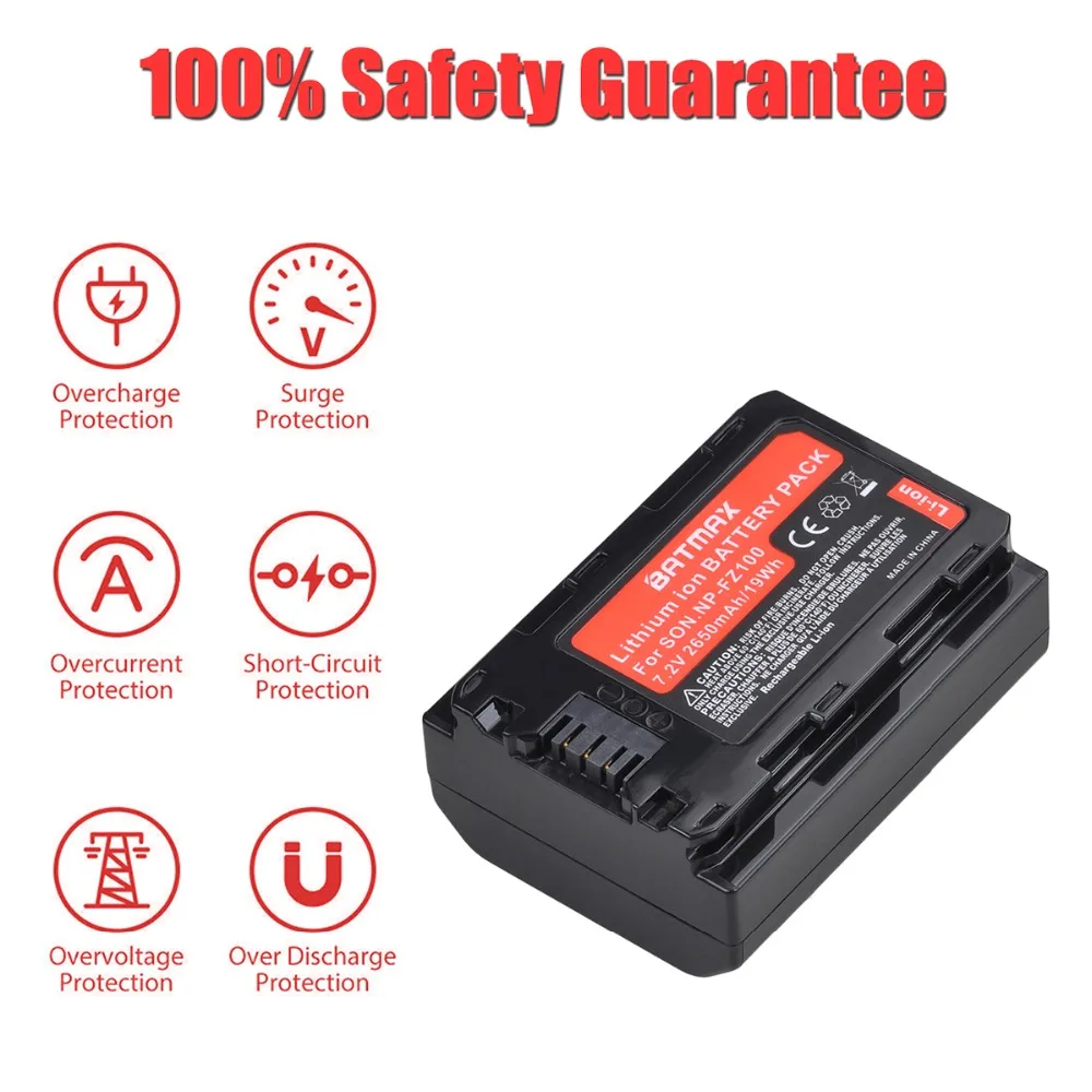 Батарея камеры Batmax 2650mAh NP-FZ100 NP FZ100 + двойное зарядное устройство USB для NPFZ100 Sony Alpha9,Sony A9,Sony Alpha9R,Sony A9R