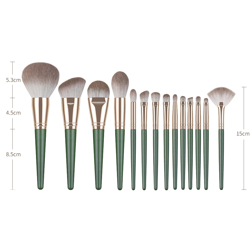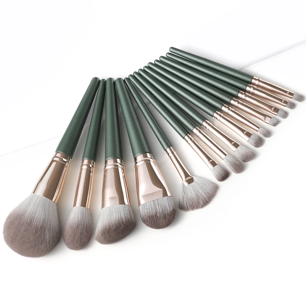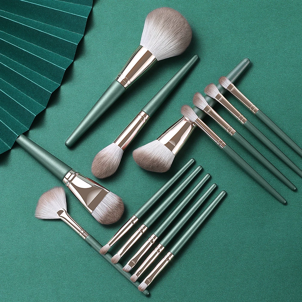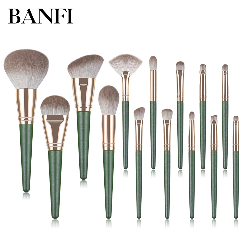Набор кистей для макияжа BANFI, 14 шт., для теней для век, зеленая матовая деревянная ручка, консилер, косметический инструмент для бровей