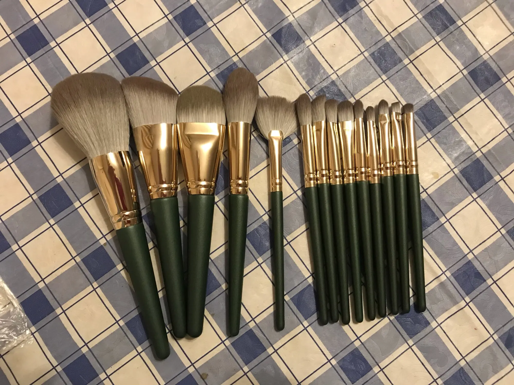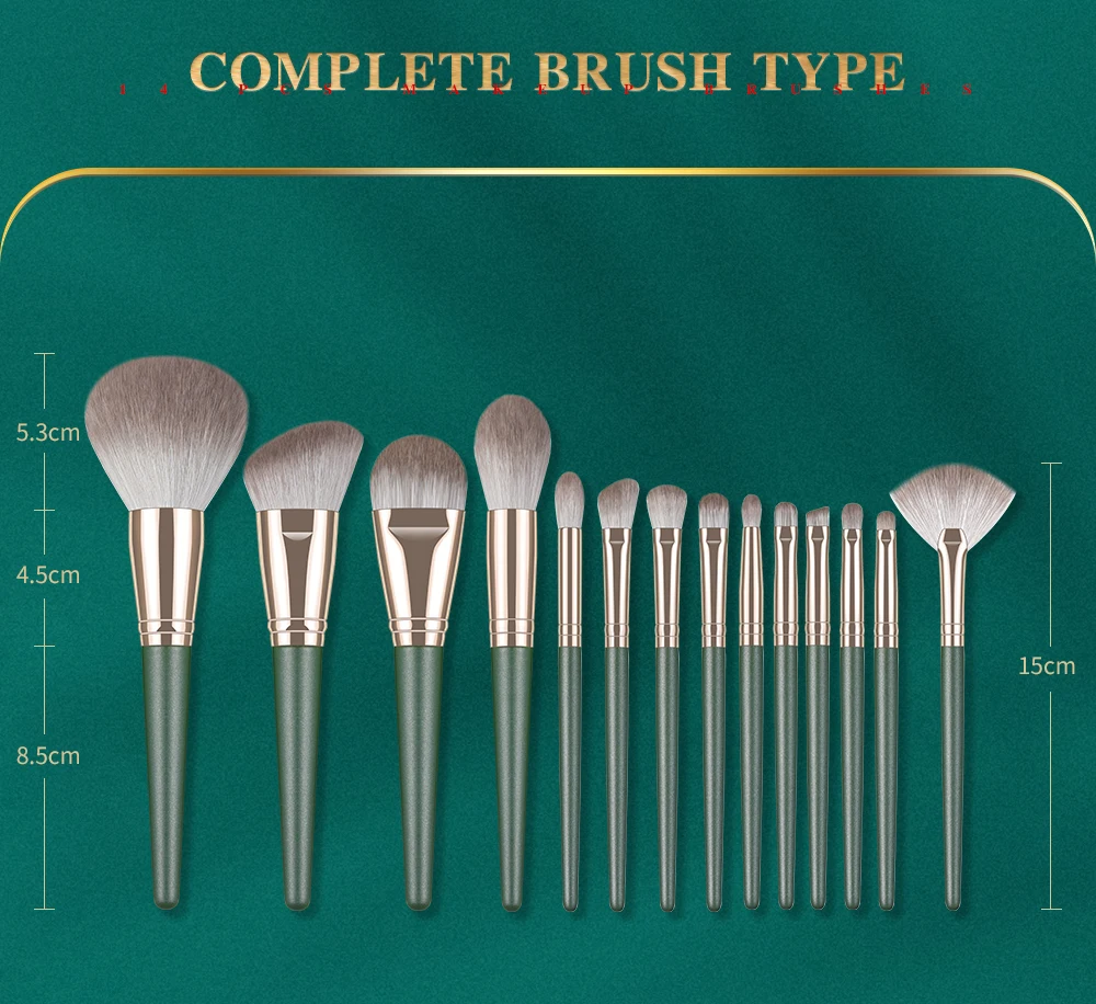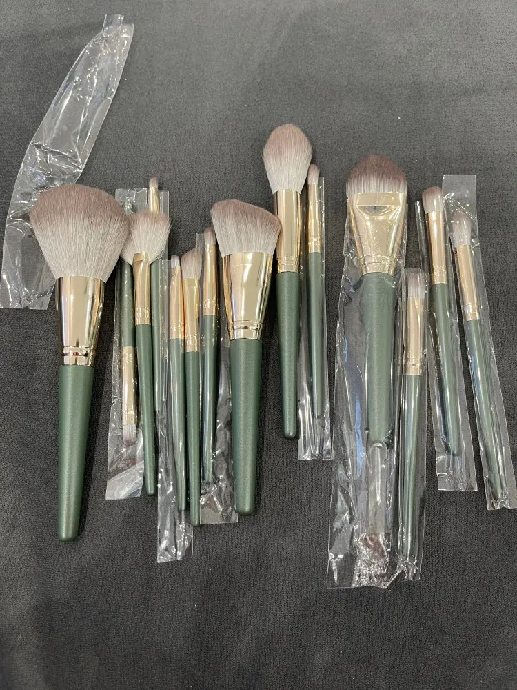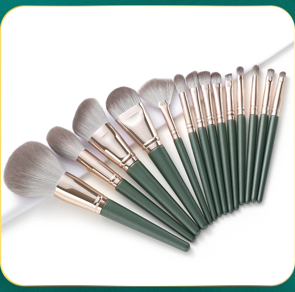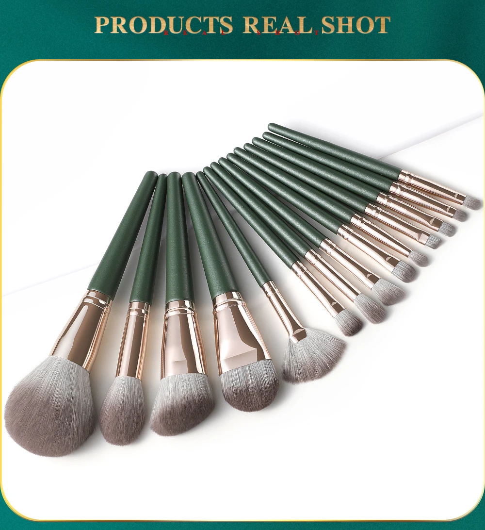 Набор кистей для макияжа BANFI, 14 шт., для теней для век, зеленая матовая деревянная ручка, консилер, косметический инструмент для бровей