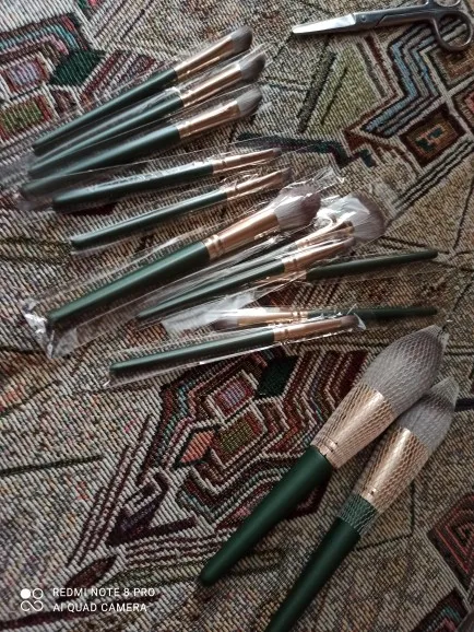 Очень красивые кисты , смотрятся достойнее некуда ! Очень приятные для лица ! Оочень плотно набитый ворс ! Безумно довольна!Спасибо продавцу ! Есть небольшие торчушки и специфический запах! Но за такие деньги минусы меркнут перед плюсами