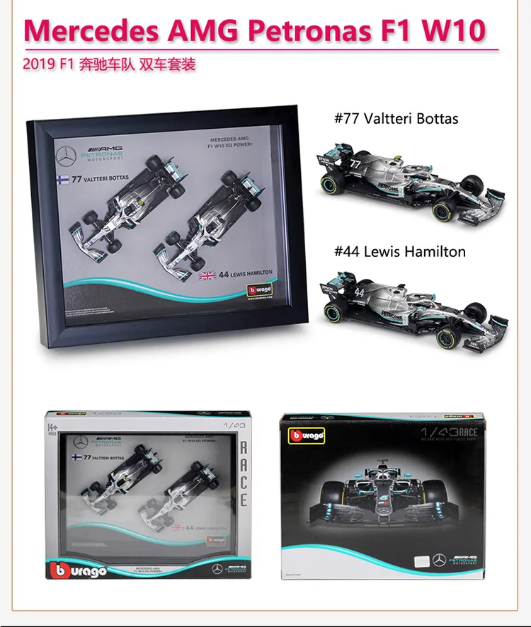 Модель автомобиля Mercedes Benz F1 W10 #44 W10 #77 1:43 с рамкой