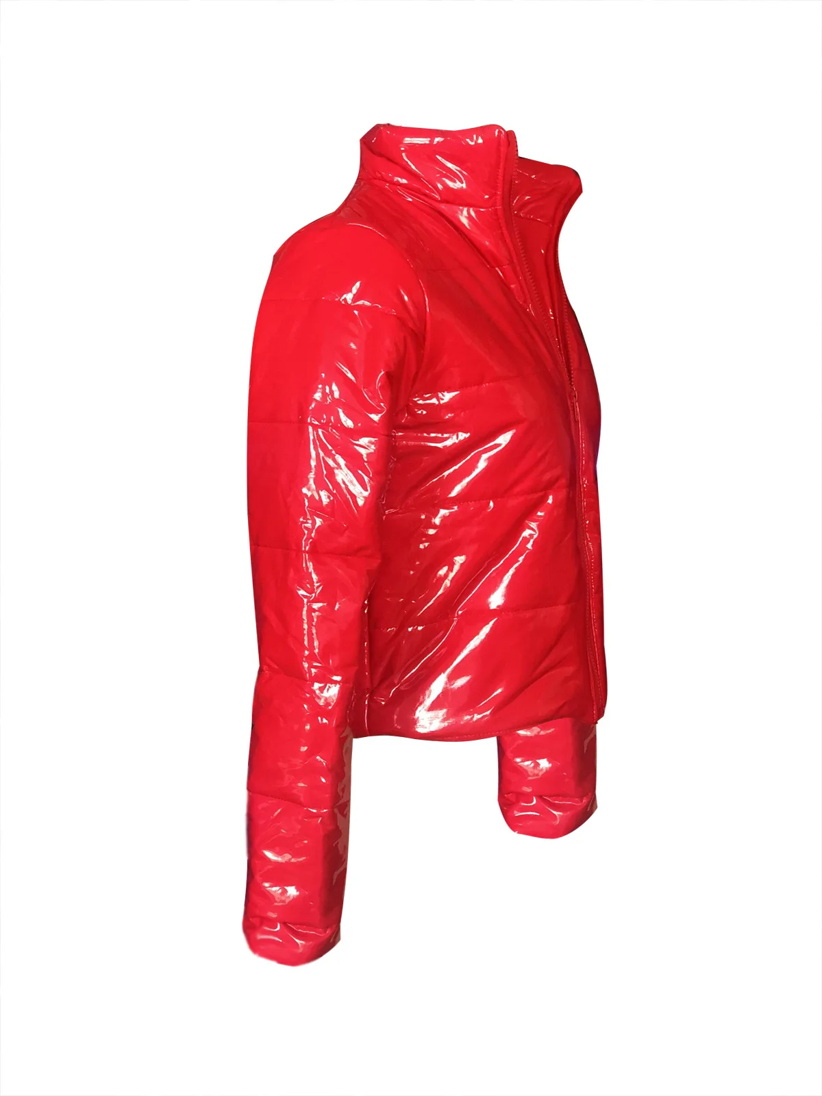 Женские повседневные короткие пальто из лакированной кожи PU, зимни...