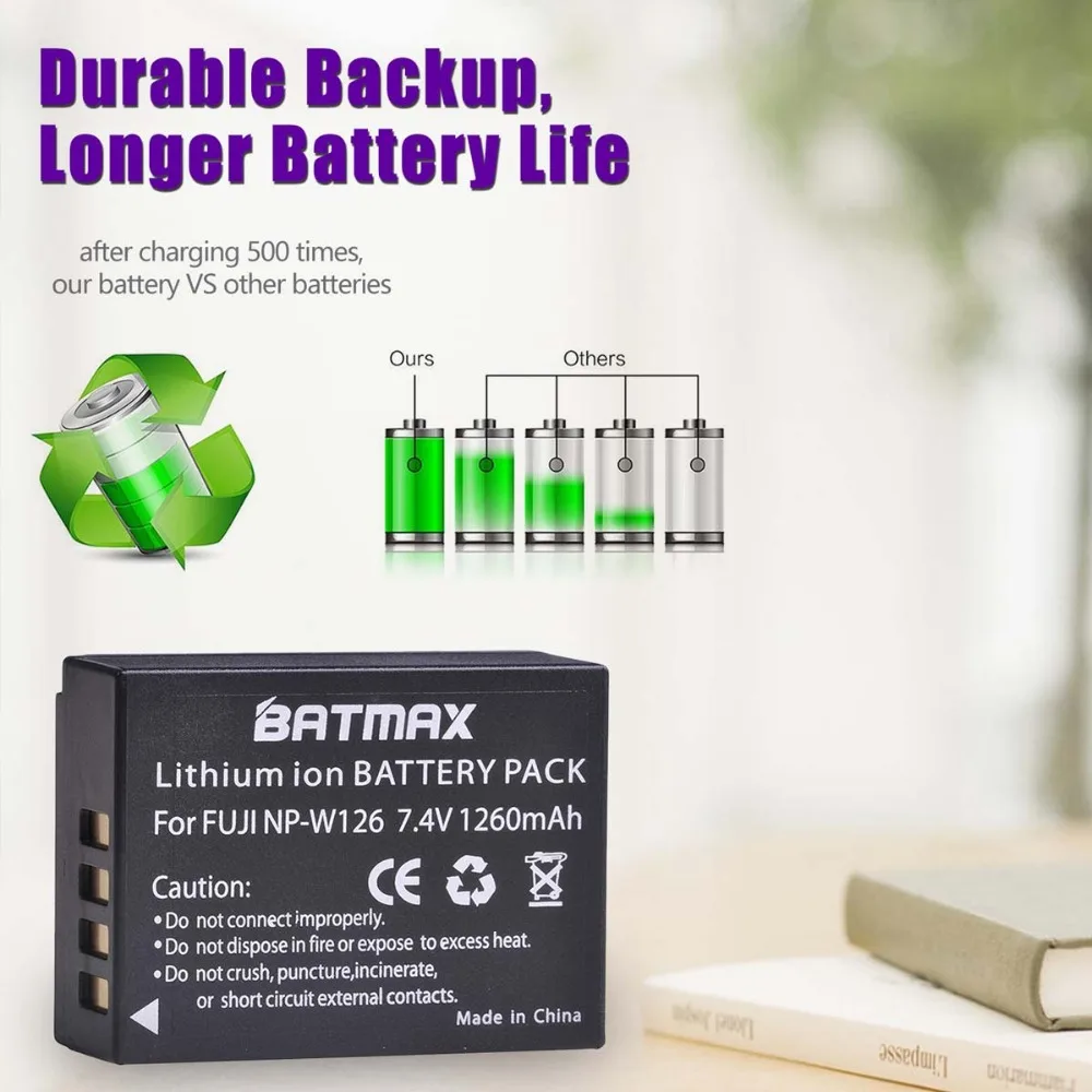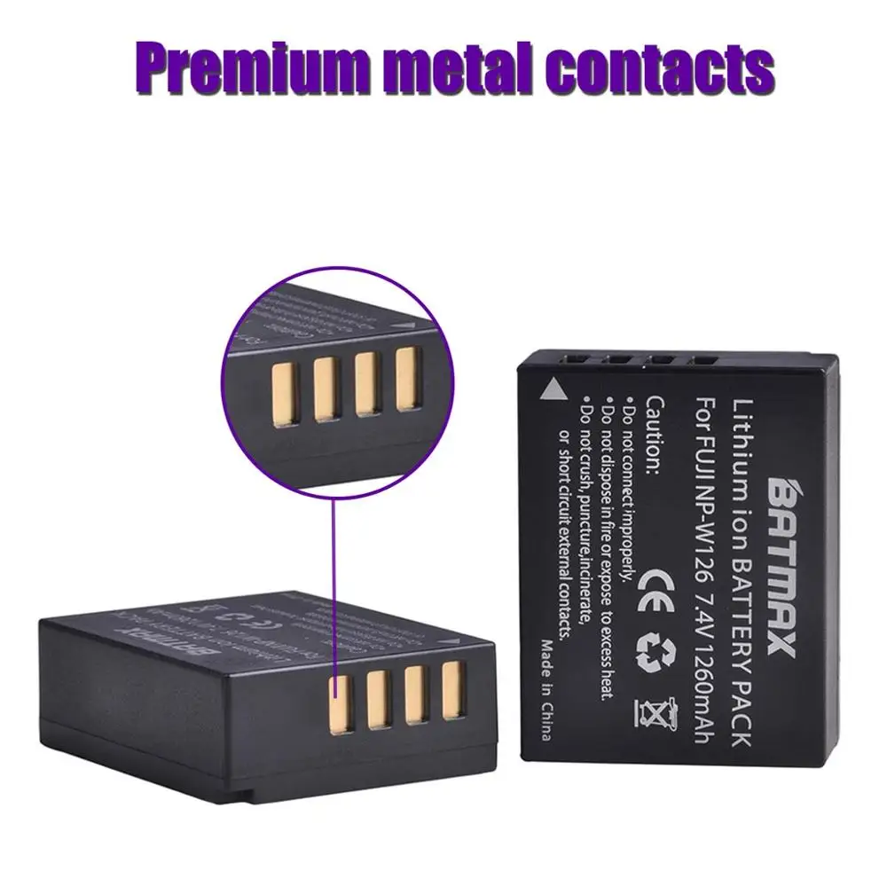 Аккумулятор Batmax 1260 мА ч NP-W126 NP-W126S + новое светодиодное зарядное устройство с двумя USB-портами для Fujifilm X-T20 X100F X-H1 XH1 X-A5 XA5 X-A20 XA20