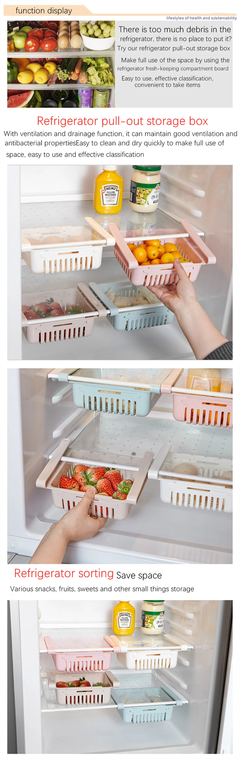Бытовой Регулируемый выдвижной ящик для хранения в холодильнике, ящик для холодильника, выдвижной ящик для холодильника, стойка для хранения с отделениями для свежести