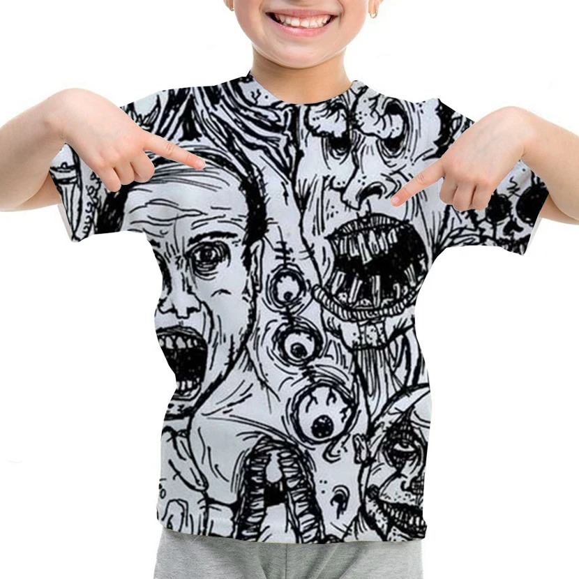 Kawaii/футболка детская летняя футболка с 3d принтом в виде фильма ужасов Детская футболка с забавными рисунками модная детская рубашка с аниме