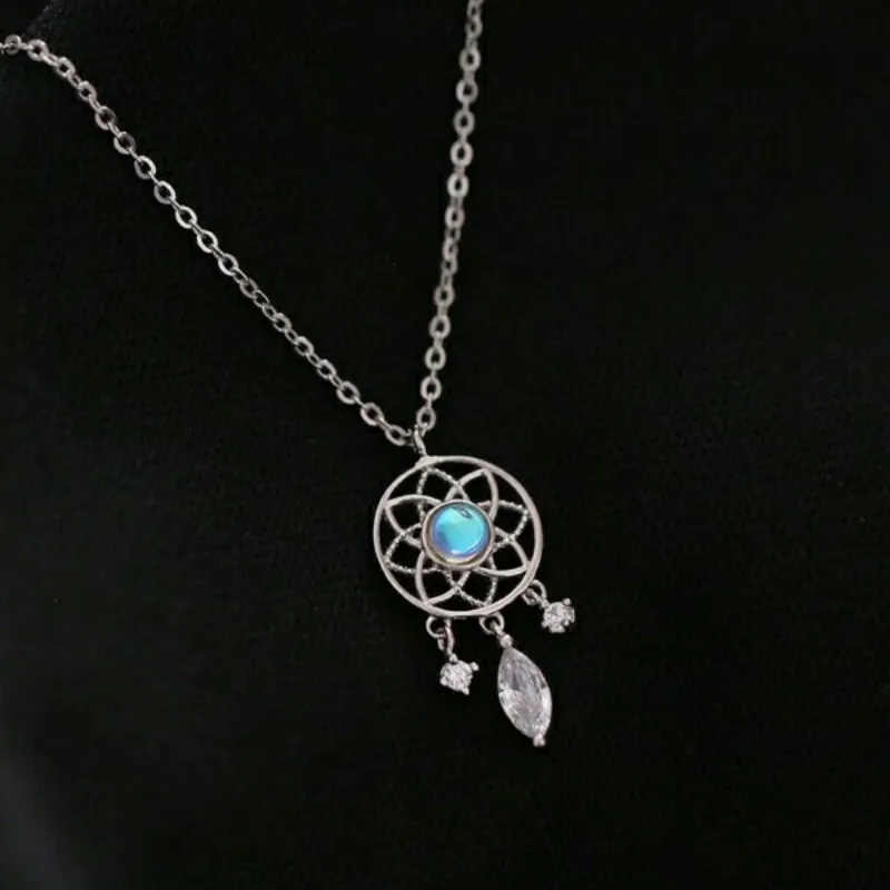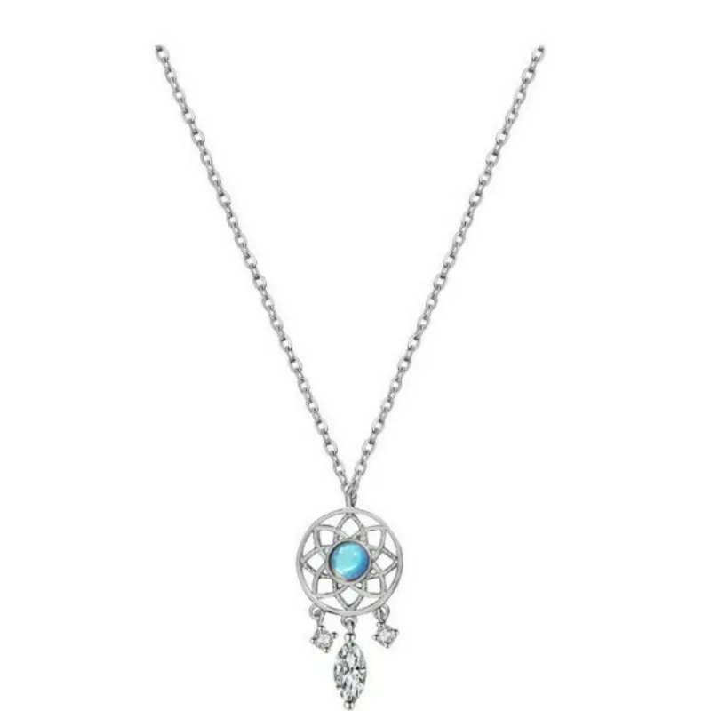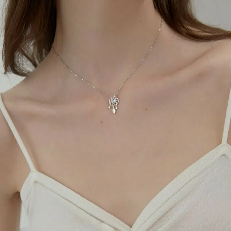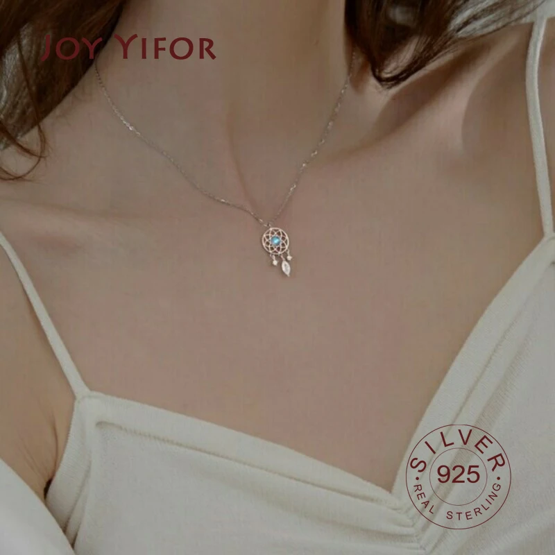 Dreamcather ожерелье лунный камень кулон новая распродажа 100% 925 Стерлинговое Серебро Круглый ювелирные изделия для женщин и девочек вечерние подарок