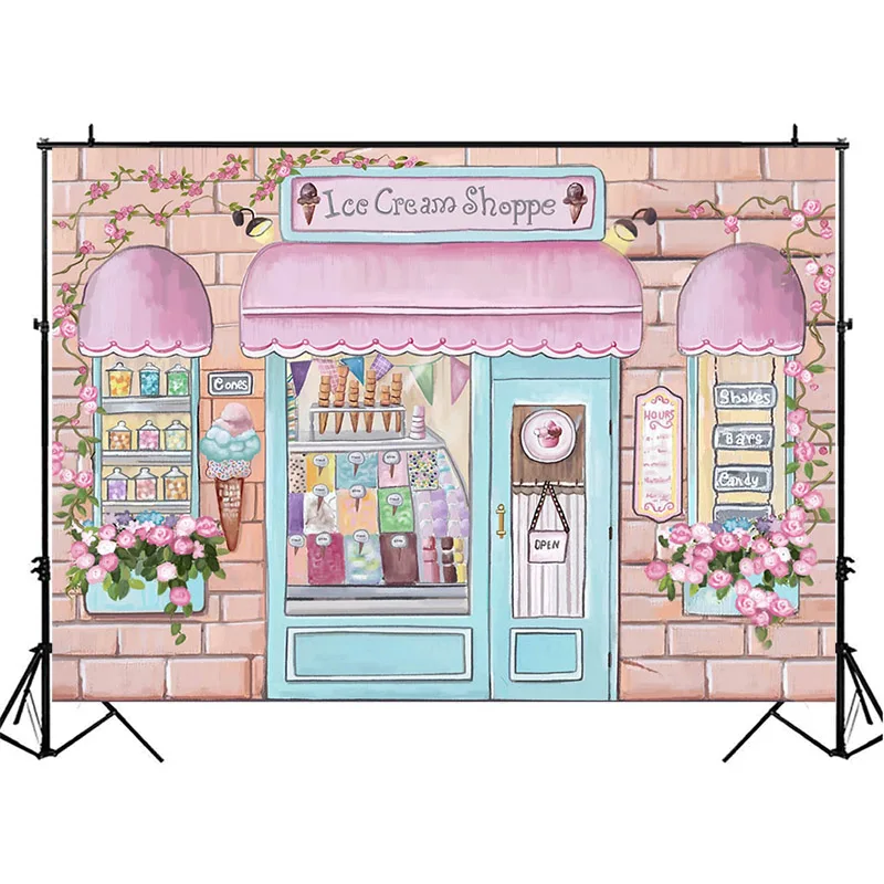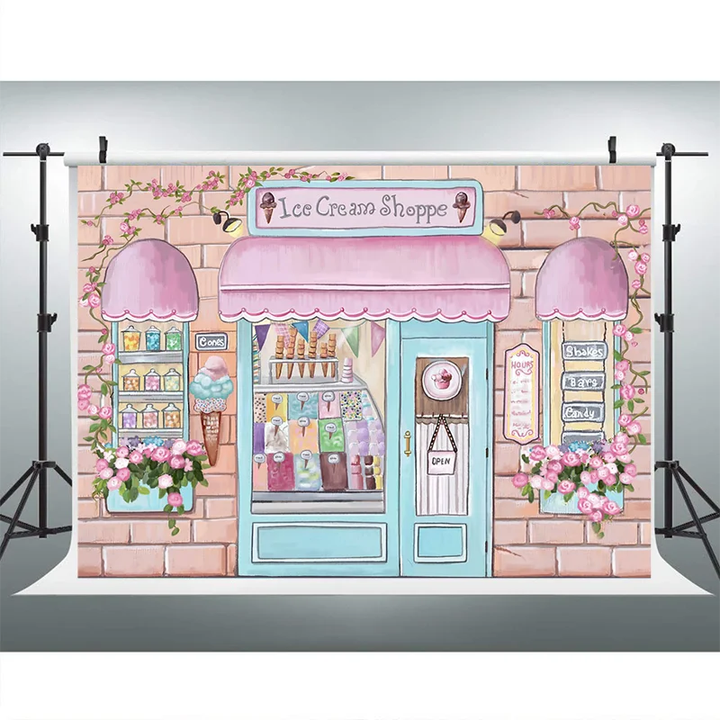 Фоны для фотосъемки конфетный бар милый шопп день рождения тема баннер для украшения вечеринки магазин мороженого фон для фотостудии