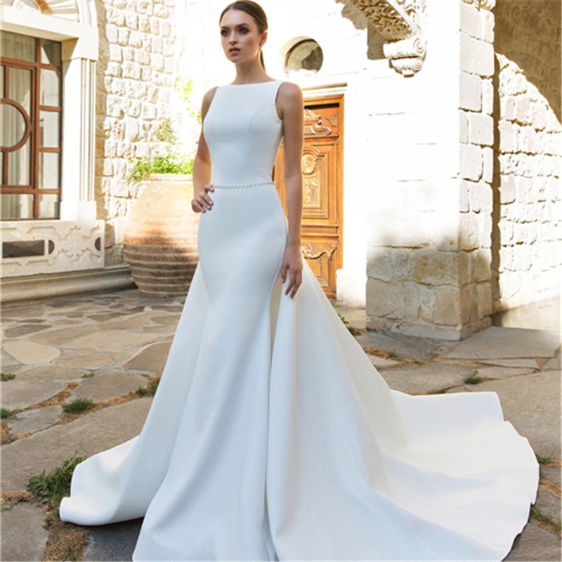 Простое Элегантное Атласное Свадебное Платье-Русалка Verngo 2020 со съемным нарукавником Свадебные платья на заказ свадебное платье