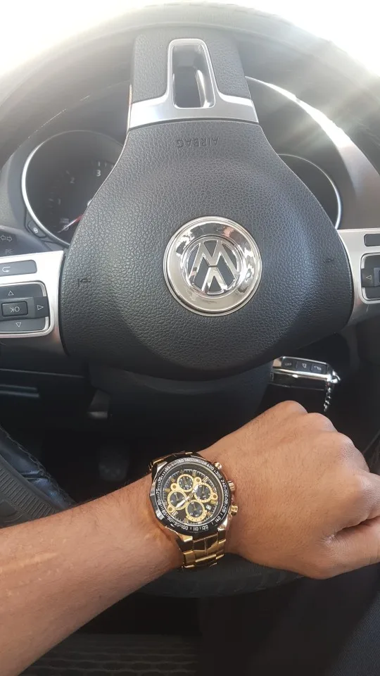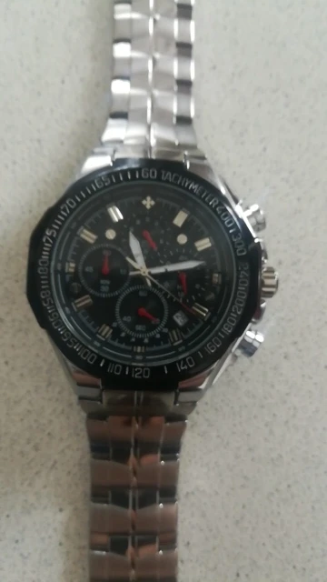 Хороший внешний вид. Все работает хорошо и прибыл очень быстро. У него нет отметки на циферблате, и это очень позитивно, потому что он не пытается быть фирменными часами. Это хорошие часы, и это более чем достаточно. Без подражаний.