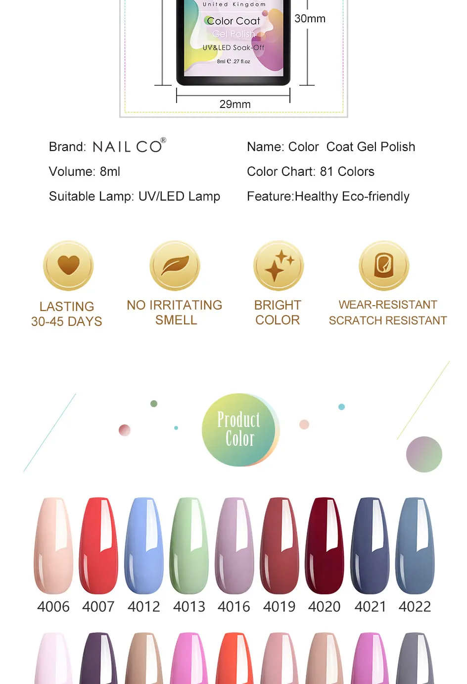 Гель-лак для ногтей NAILCO 8 мл, удаляемый замачиванием светодиодный гель, полуперманентный УФ-лак, яркий цветной лак, верхнее Базовое покрытие