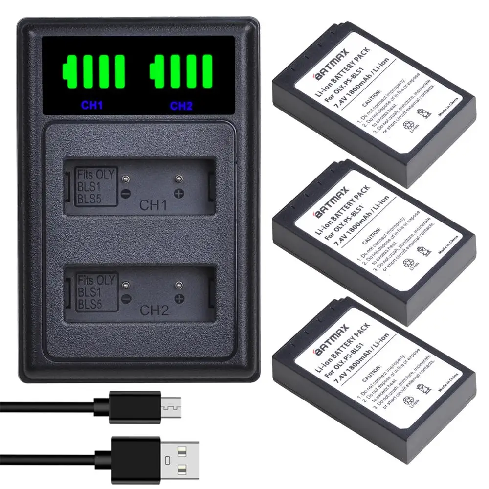 Batmax PS-BLS1 BLS1 Батарея + Новый светодиодный двойной USB Зарядное устройство для цифровой камеры Olympus E-PL1 E400 E410 E420 E450 E620 E-P1 E-P2 Батарея