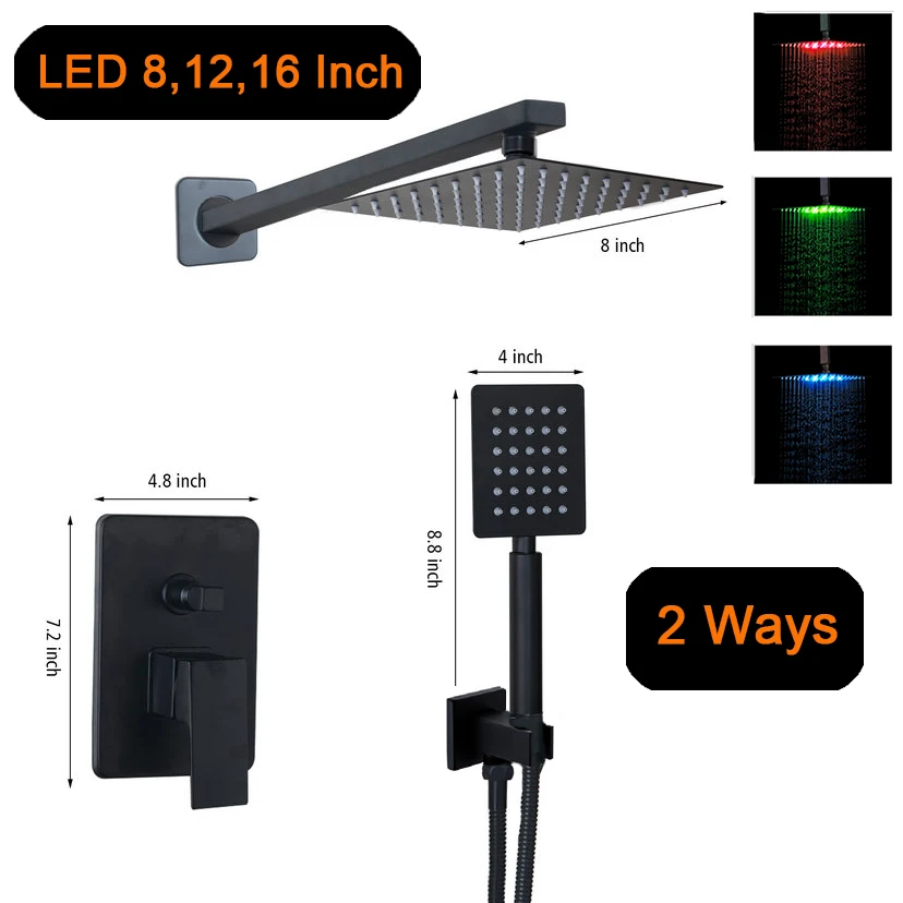 Насадка для душа черная, 81216 дюймов, со светодиодный кой