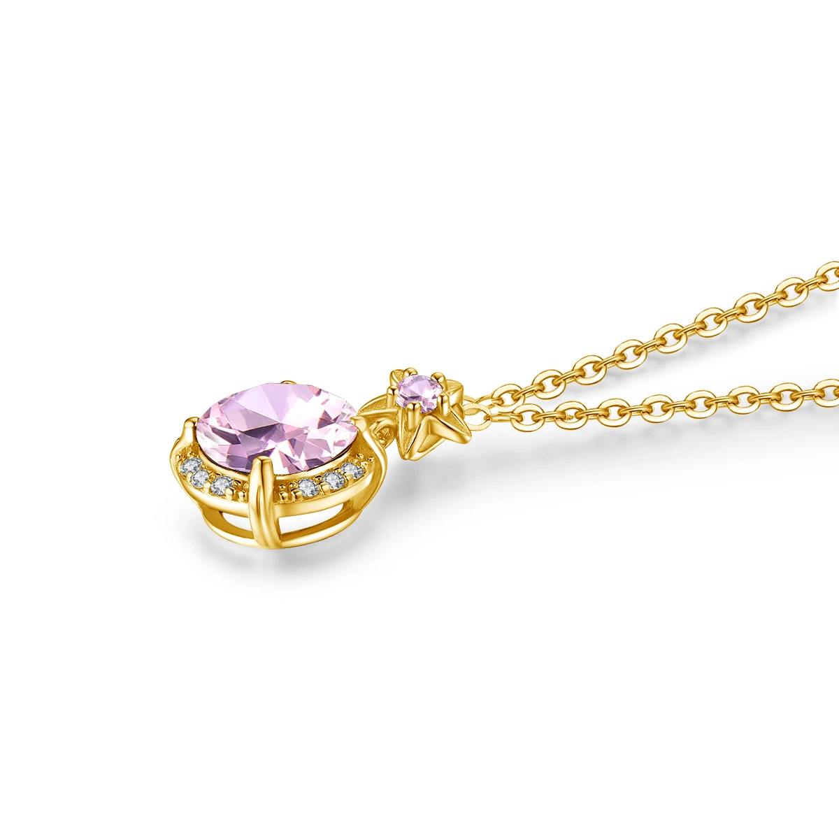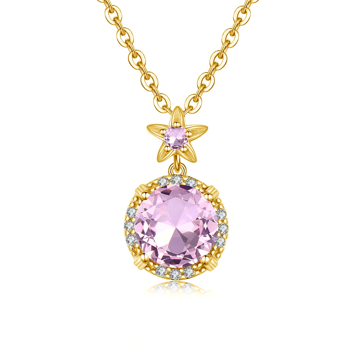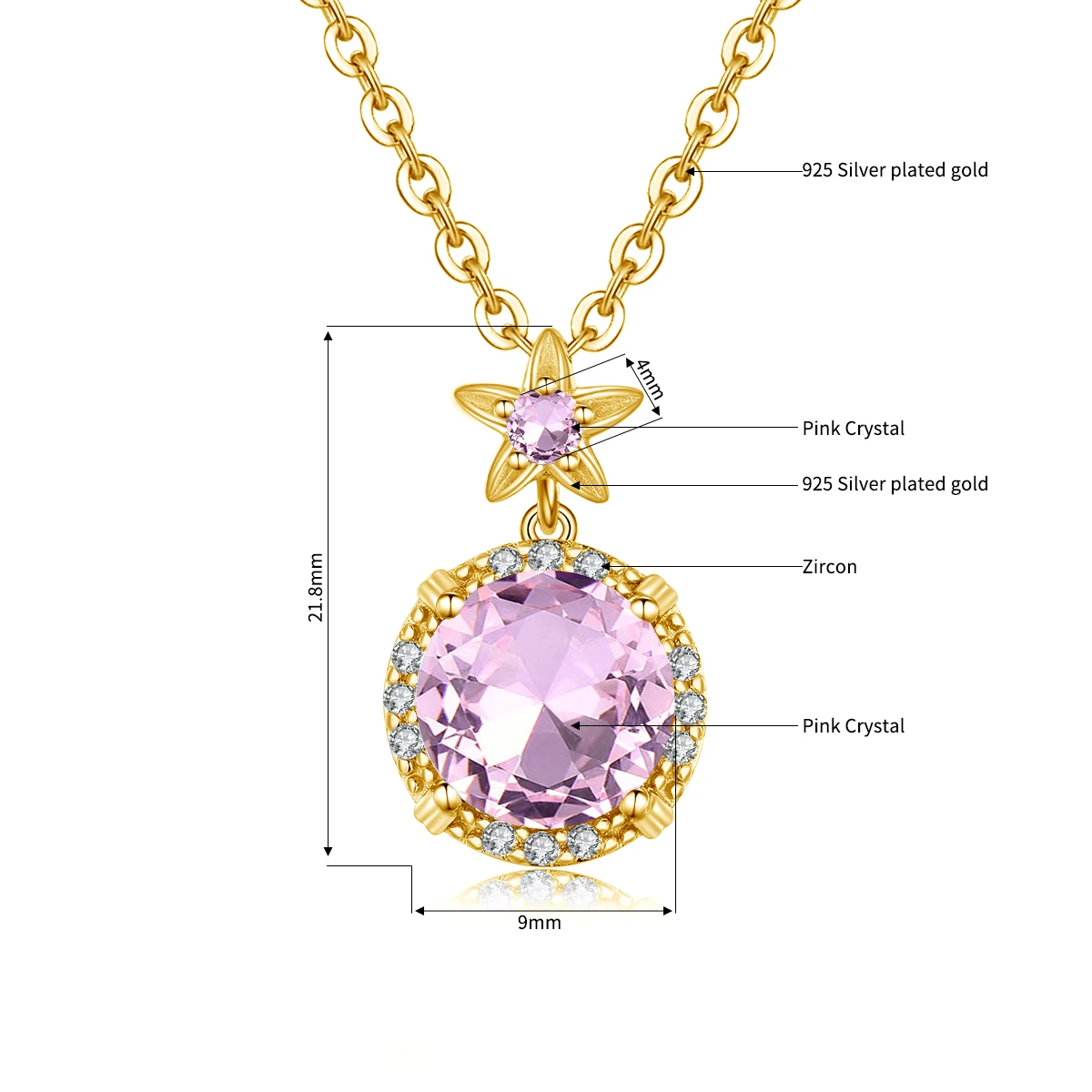 • Тип камня: розовый кристалл • Цвет: розовый + позолота • Форма камня: круглая • Метод Создания камня: Лабораторный • Метод обработки камня: без обработки • Размер драгоценного камня: 7,0*7,0 мм (прибл.) • Четкость камня: VVS • Тип металла: серебро 925 пробы • Общий вес: --- граммы (прибл.) (Примечание: этот товар не поставляется с ожерельем, пожалуйста, купите дополнительно.)