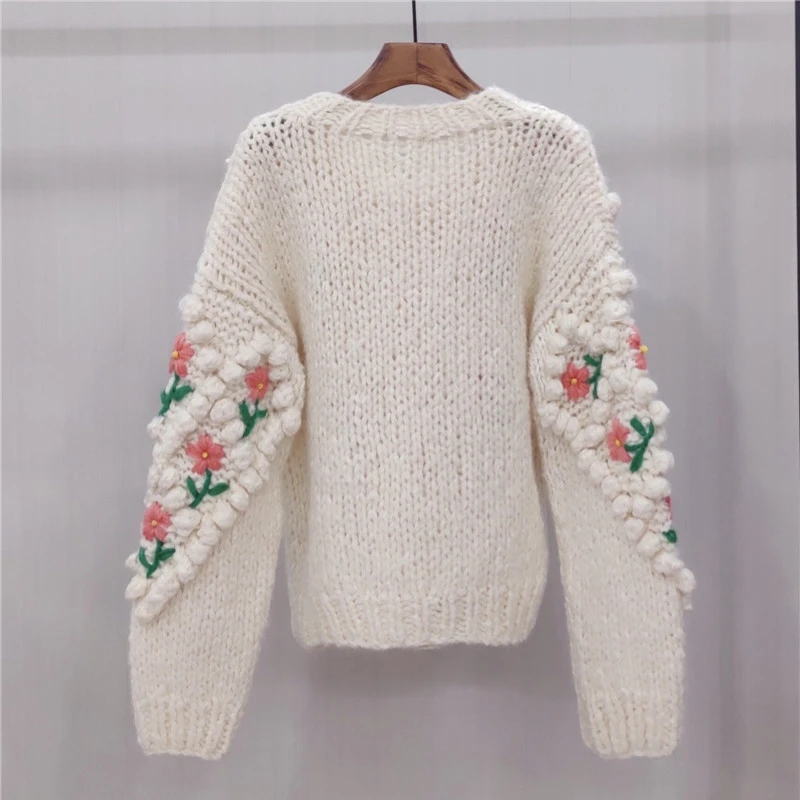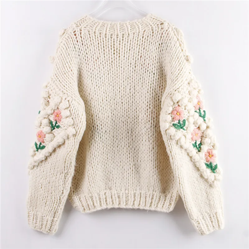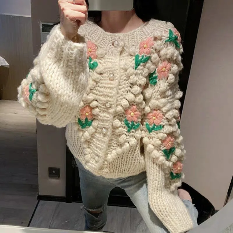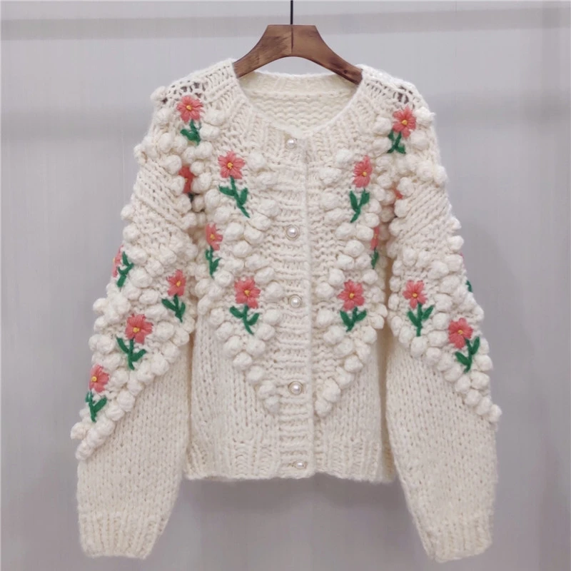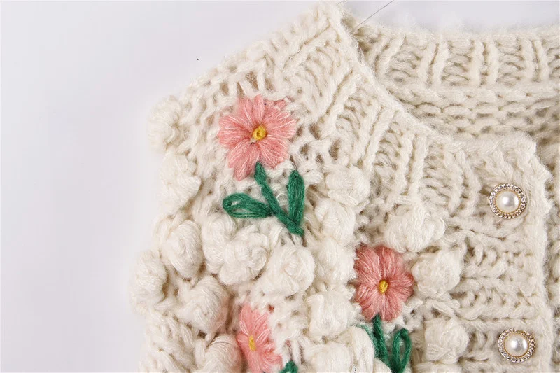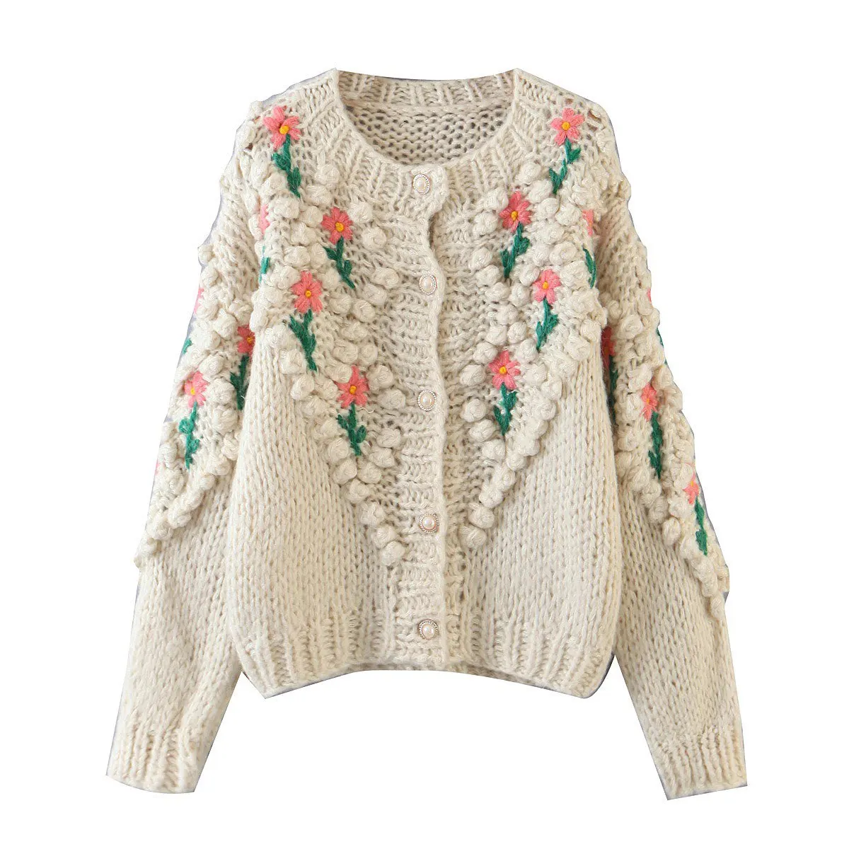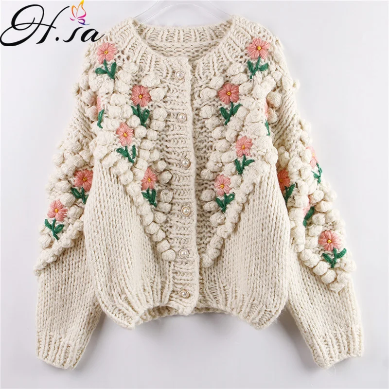 Женский кардиган с жемчугом H.SA, трикотажный жакет с цветочной вышивкой, зима 2021