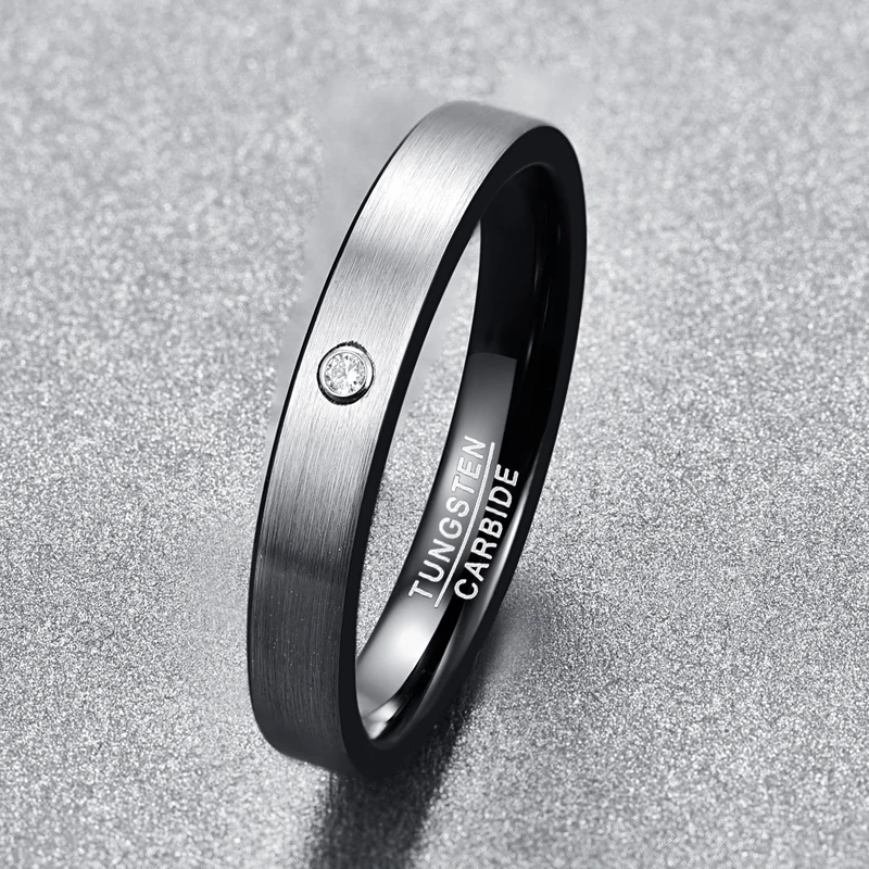 Nuncad 4 мм 100% карбид вольфрама черное кольцо Мужские Ювелирные аксессуары мужские матовые кубические циркониевые панк кольца подарок для мальчиков
