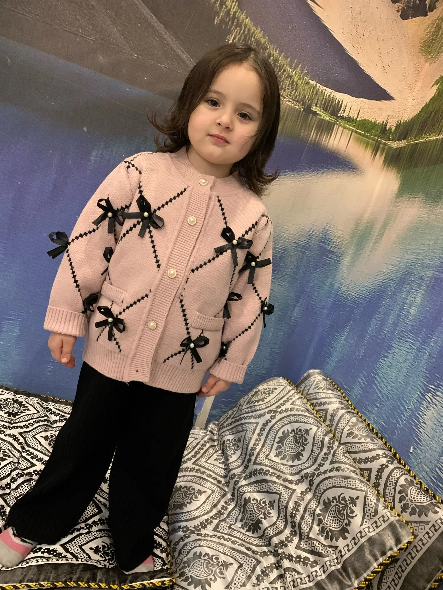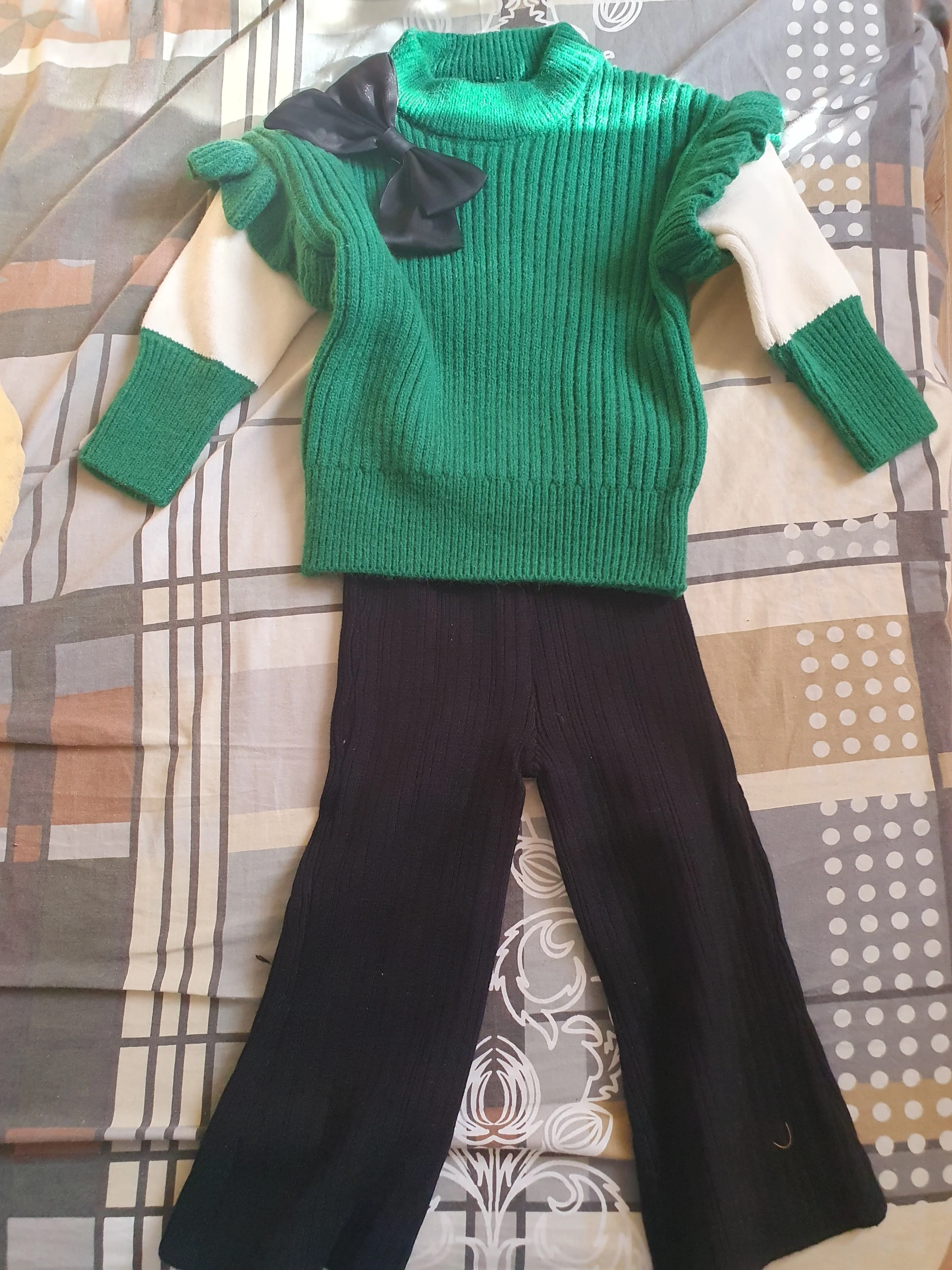 Очень красивый и мягкий костюмчик! Кардиган плотный, все бусины и бантики на месте Брючки как плотная лапша Рекомендую, замечательный костюмчик для девочки, исполнение - на уровне дорогой корейской одежды для детей У нас такие в магазинах стоят более 6-7 тыс