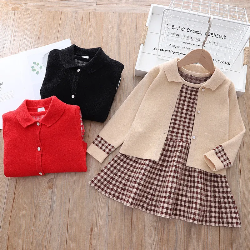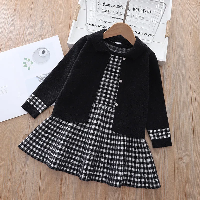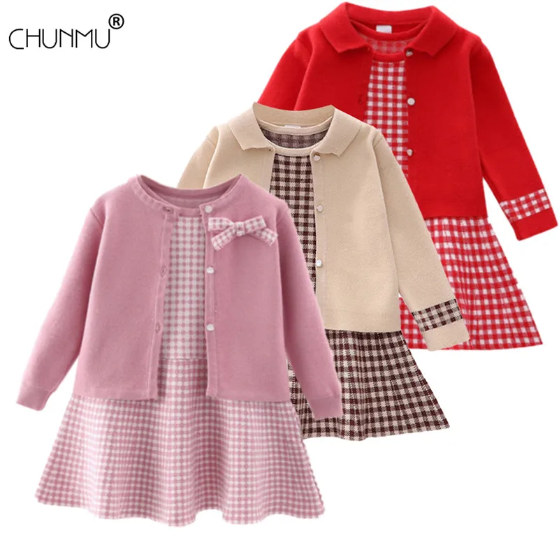 Комплект зимней одежды для маленьких девочек; Одежда для дня рождения; Детский вязаный свитер с цветочным узором для девочек + юбка; Комплект осенней одежды для девочек; Детский костюм