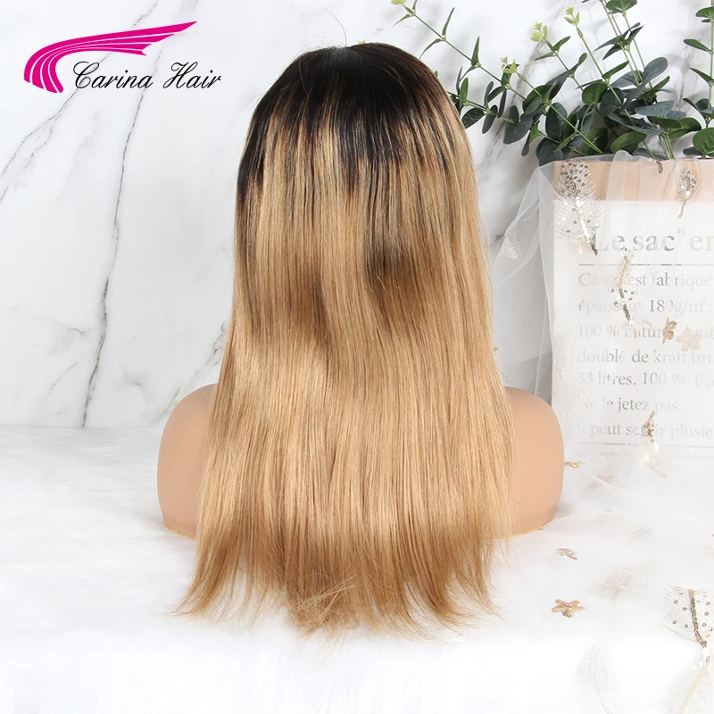 13x4 Синтетические волосы на кружеве парики из натуральных волос с эффектом деграде (переход от темного к 1B27 Цветной человеческие волосы бразильские волосы прямые парики из натуральных волос для девочек; Мини-юбка для черный Для женщин