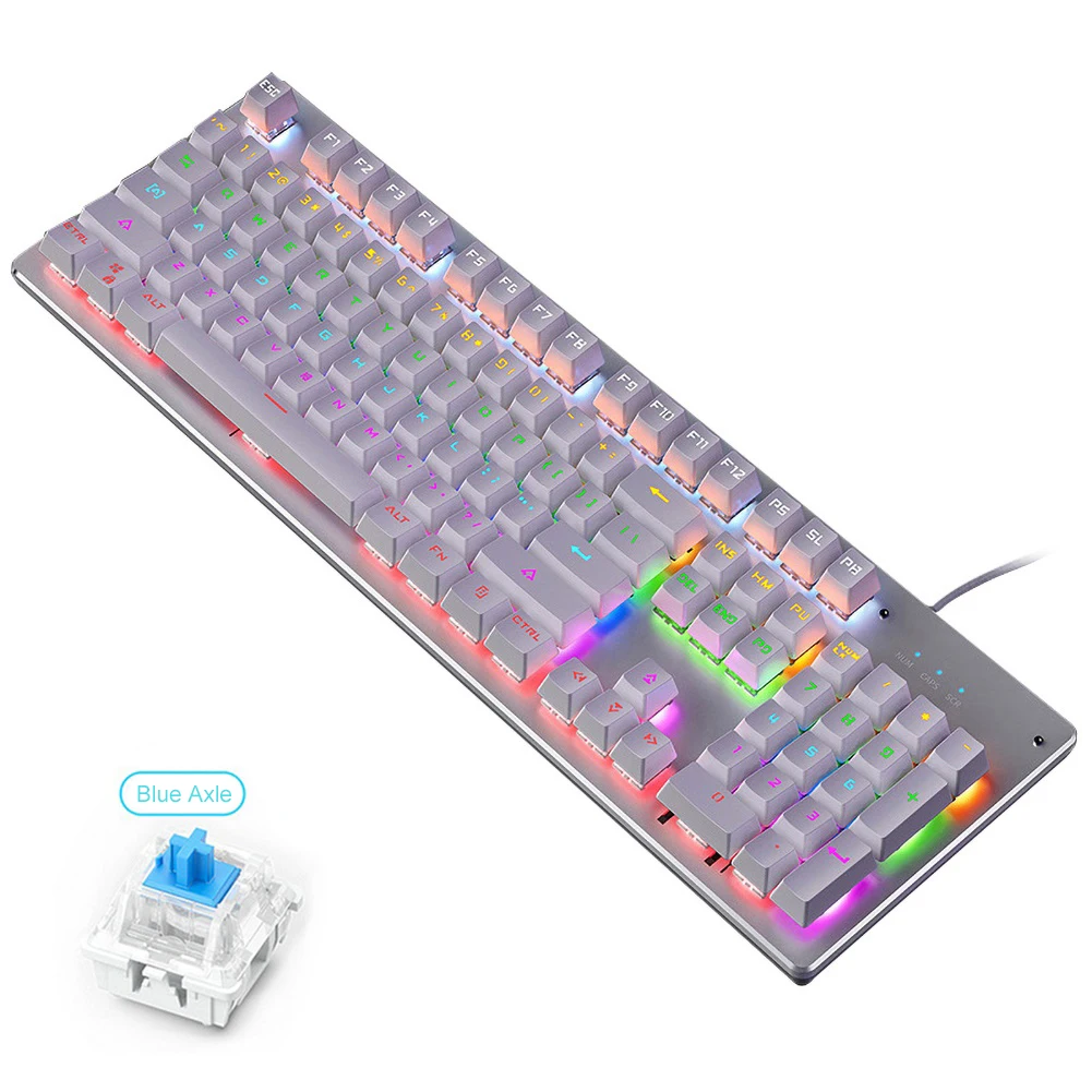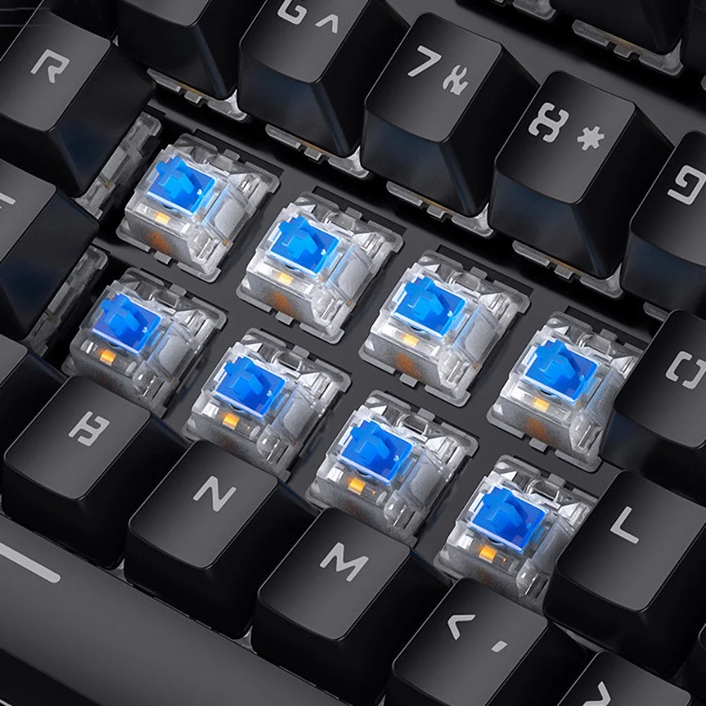 Проводная игровая Механическая RGB светодиодный подсветка синяя черная ось клавиатура для ноутбуков Характеристики: Механическая клавиатура имеет дизайн 87 стандартных бесконтактных клавиш и 12 мультимедийных клавиш. Он имеет специальную область освещения RGB с более чем 16,8 миллионов цветов, которые могут дать вам самый удивительный опыт подсветки. Высокопроизводительные игровые клавиши и защелка N key помогут вам двигаться правильно с безупречной точностью и уникальным прикосновением. Ступенчатые колпачки для ключей, расширенные игровые клавиши и увеличенная пробела позволяют быстро нажимать, легко управлять и уменьшать усталость. Название товара: Механическая клавиатура Материал: пластик, металл Интерфейс: USB Механические оси: черная ось, синяя ось (оптическая) Совместимые системы: для Win XP/7/8/10, для MAC10.2 или выше Особенности: подсветка, удобная в использовании, эргономичная Размер: 45 см x 18 см x 4 см/17,72 "x 7,09" x 1,57 "(приблизительно) Примечания: Благодаря светильник и экрана Цвет Товара может быть s светильник ly отличается из-за характеристик монитора компьютера. Возможны незначительные отклонения в размерах из-за различных измерений вручную. Посылка включает в себя: Механическая клавиатура-1 шт. 1 x Руководство пользователя