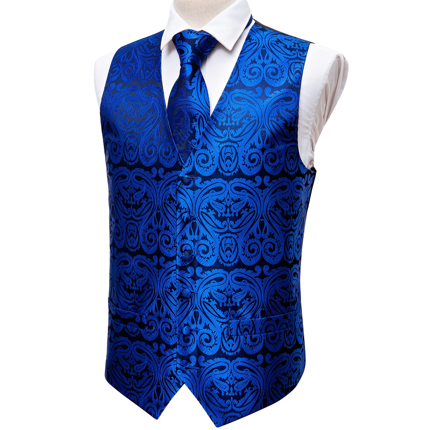 Жилет мужской костюм с v-образным вырезом, темно-синий, с галстуком и запонками, Шелковый, SJ-2024