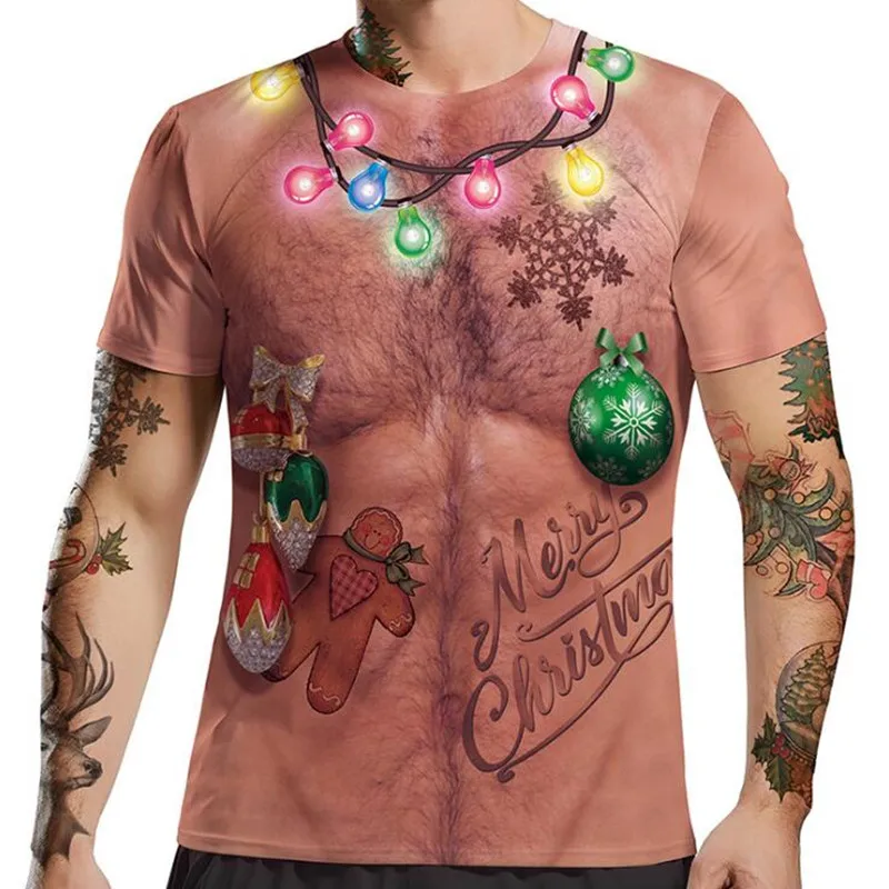 Уродливые футболки в рождественском стиле для мужчин футболка с короткими рукавами размера плюс Мужской Забавный футболка Джерси унисекс Топы, летние футболки, одежда для рождественских праздников