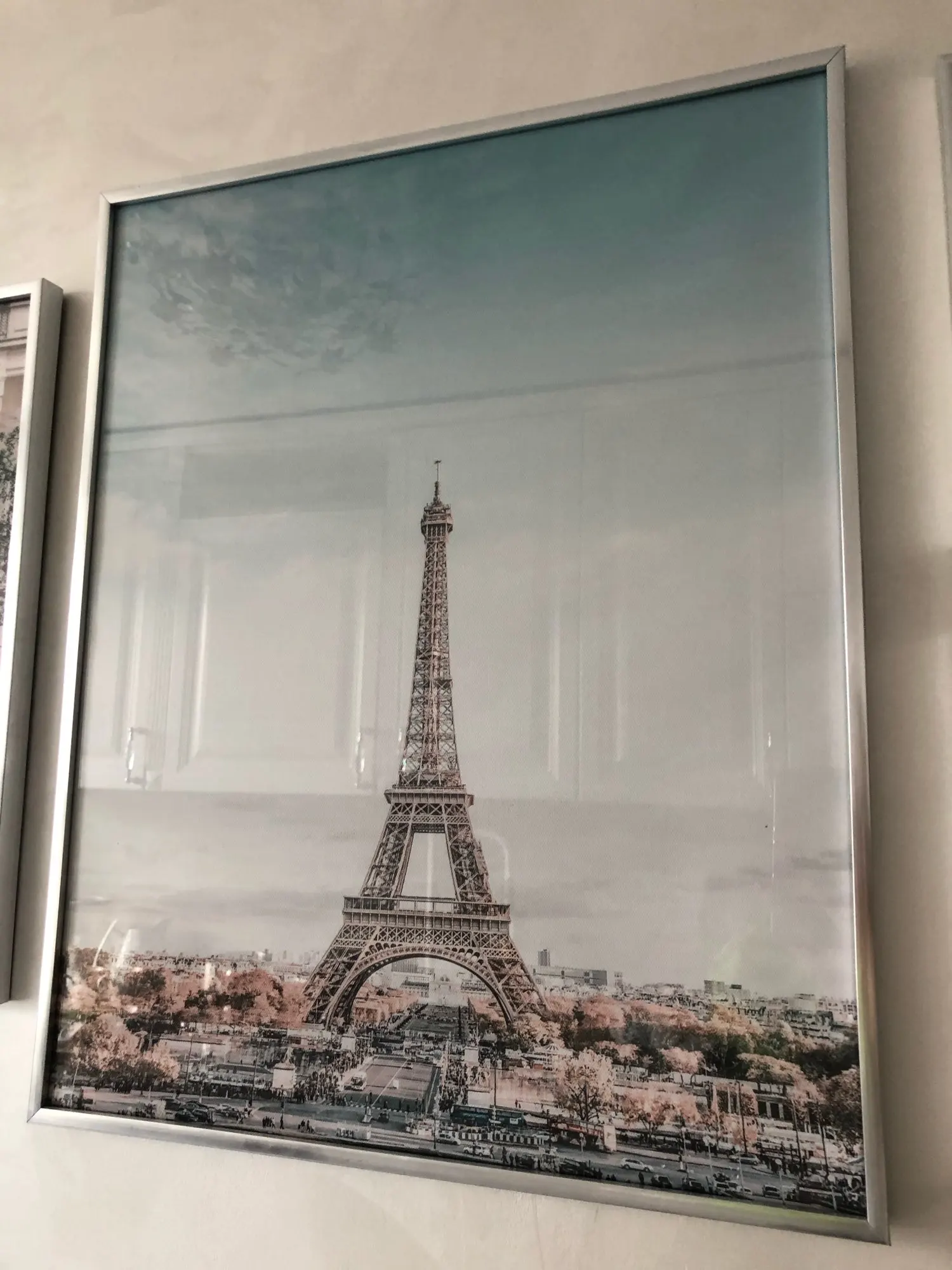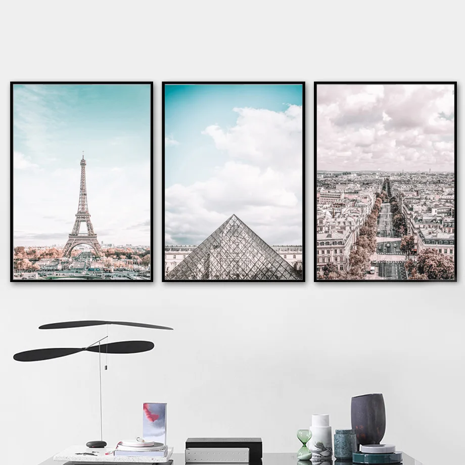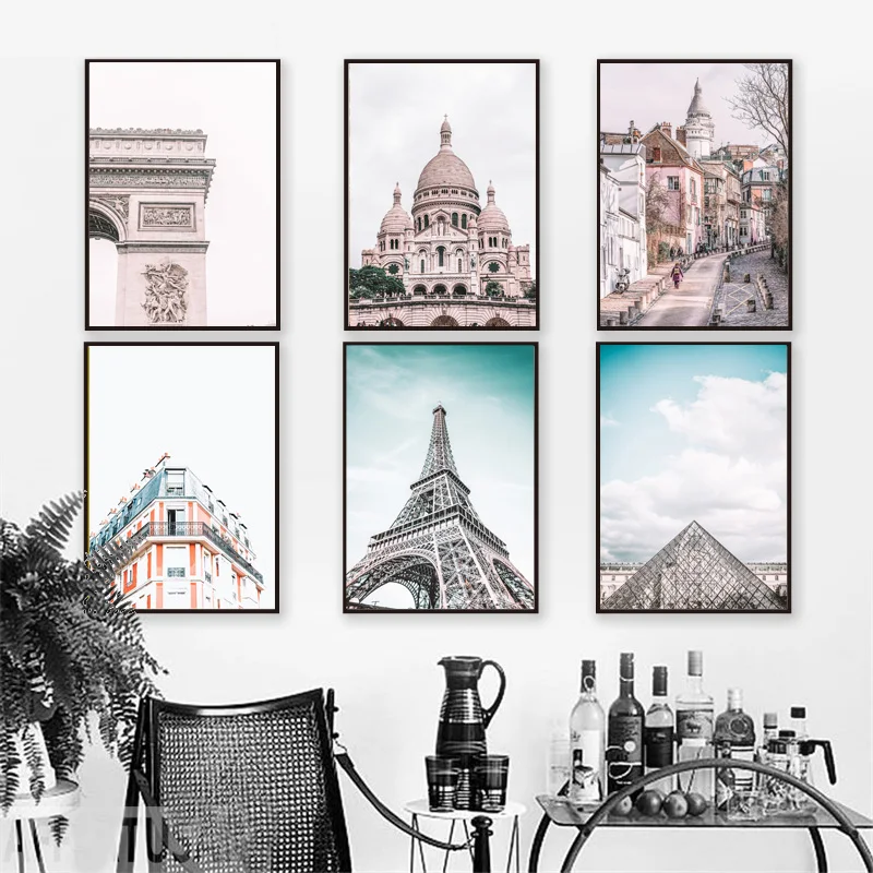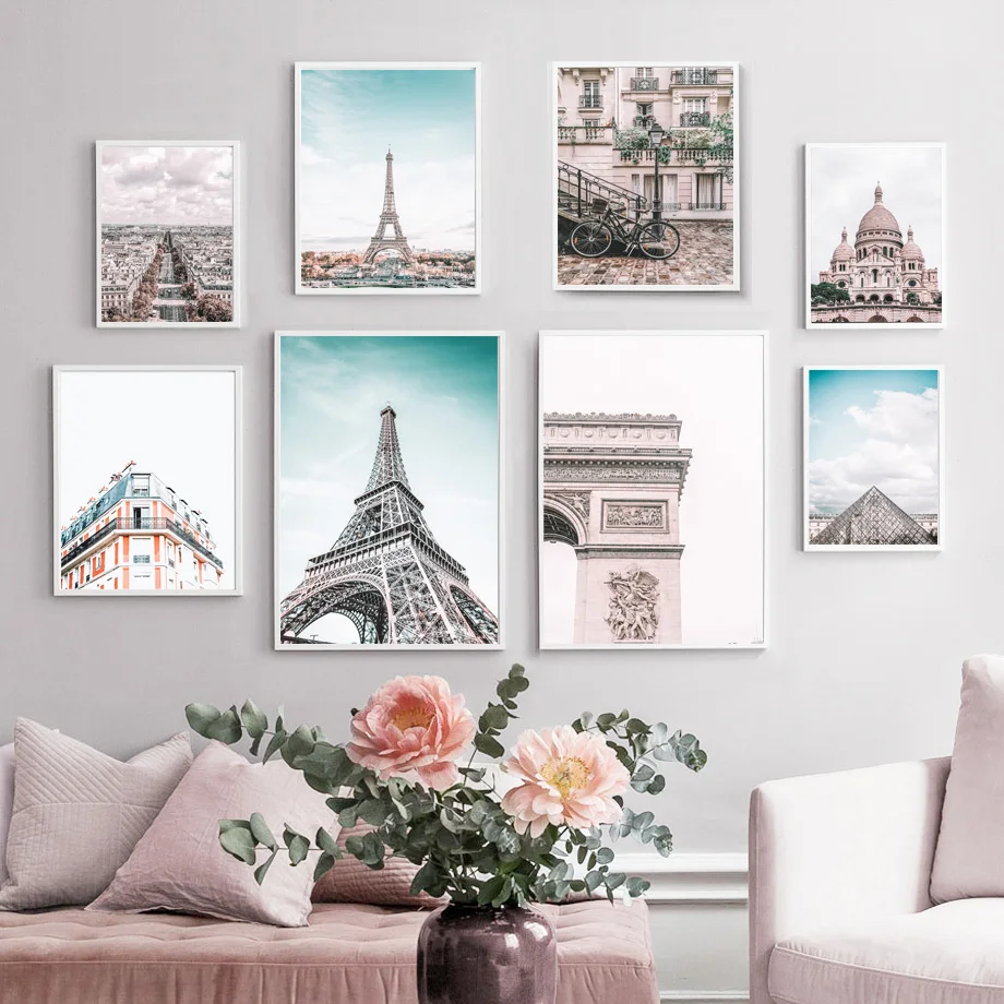 Картина на холсте с изображением розовой Парижской башни, уличных п...