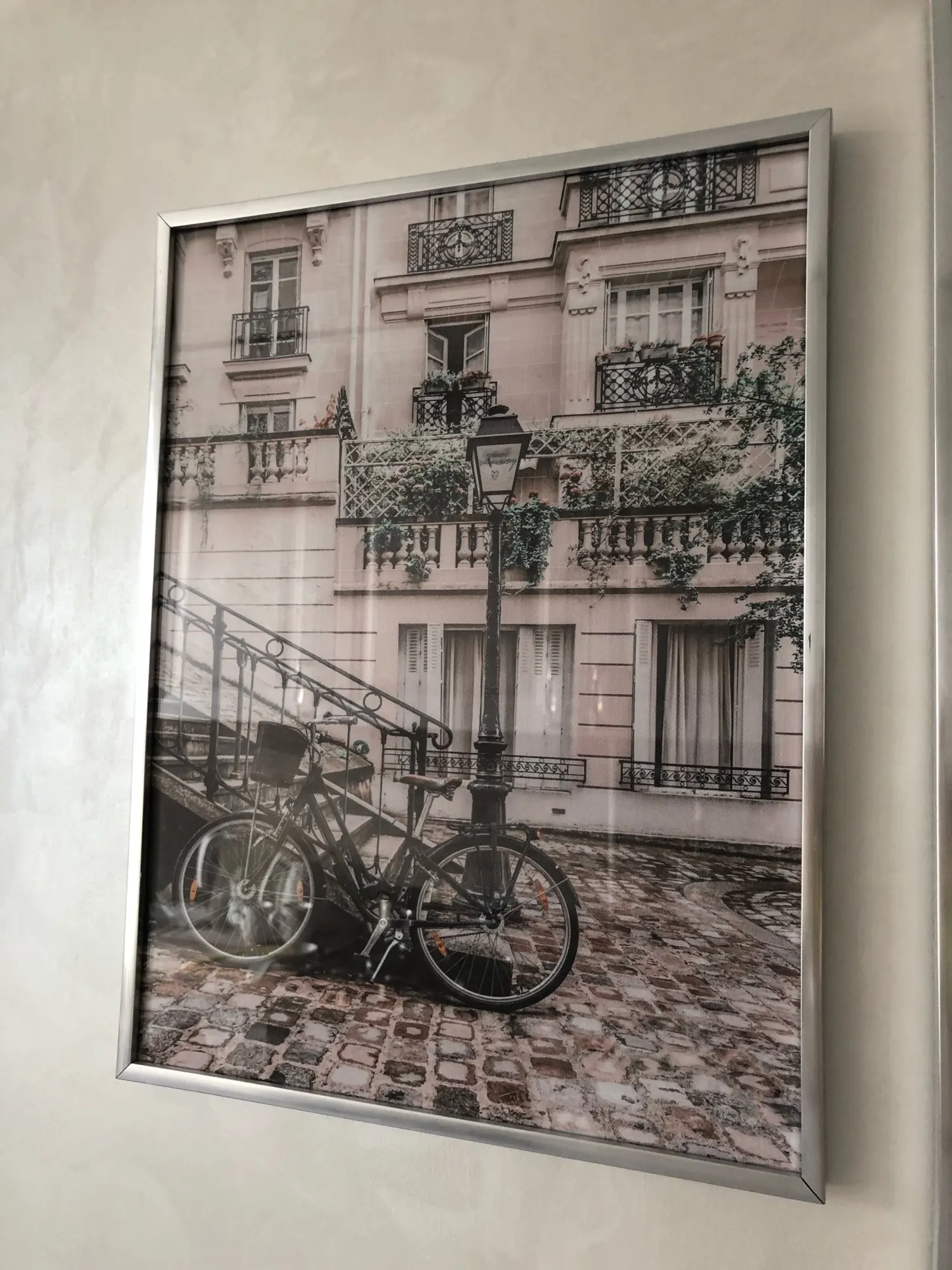 Настенная картина розовый город, улица, дерево, дом, велосипед