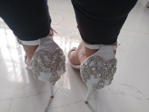 Они действительно красивые, жаль, потому что в середине отсутствуют 2 бриллианта на передней части обуви, Я разочарован, потому что кроме этого они очень красивые