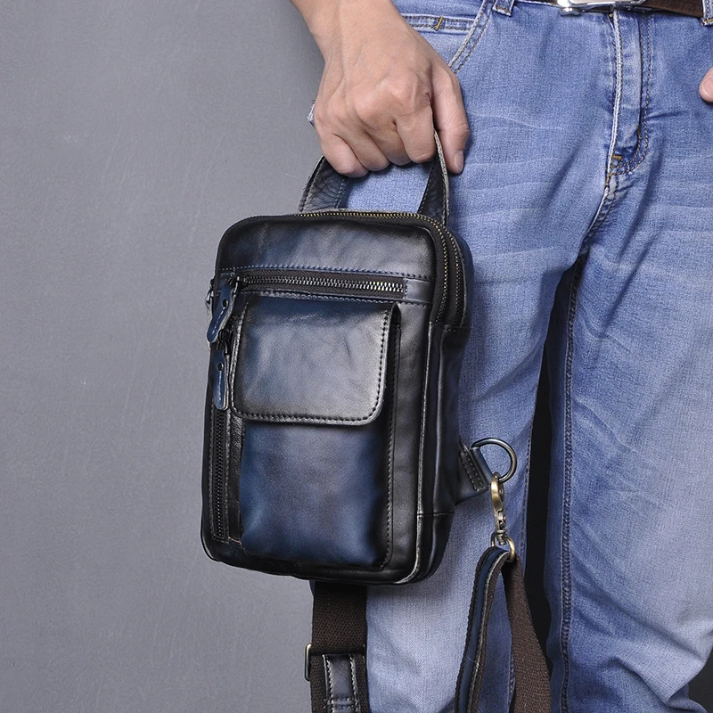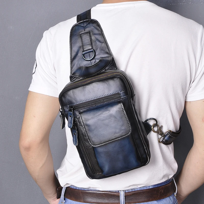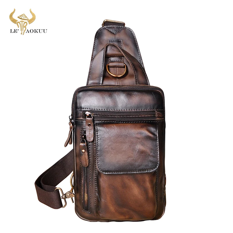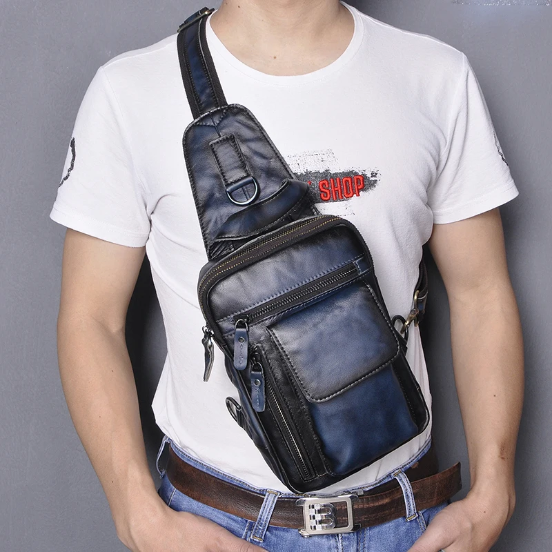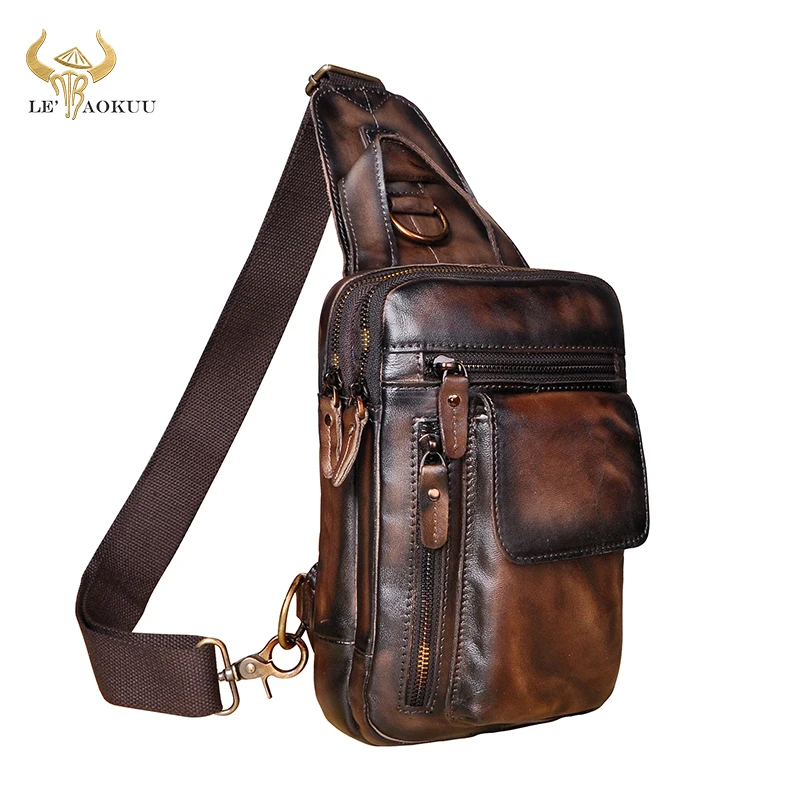 Нагрудная сумка B574 мужская из натуральной коровьей кожи, модный саквояж треугольной формы для путешествий, сумочка кросс-боди для планшета 8 дюймов, для чая