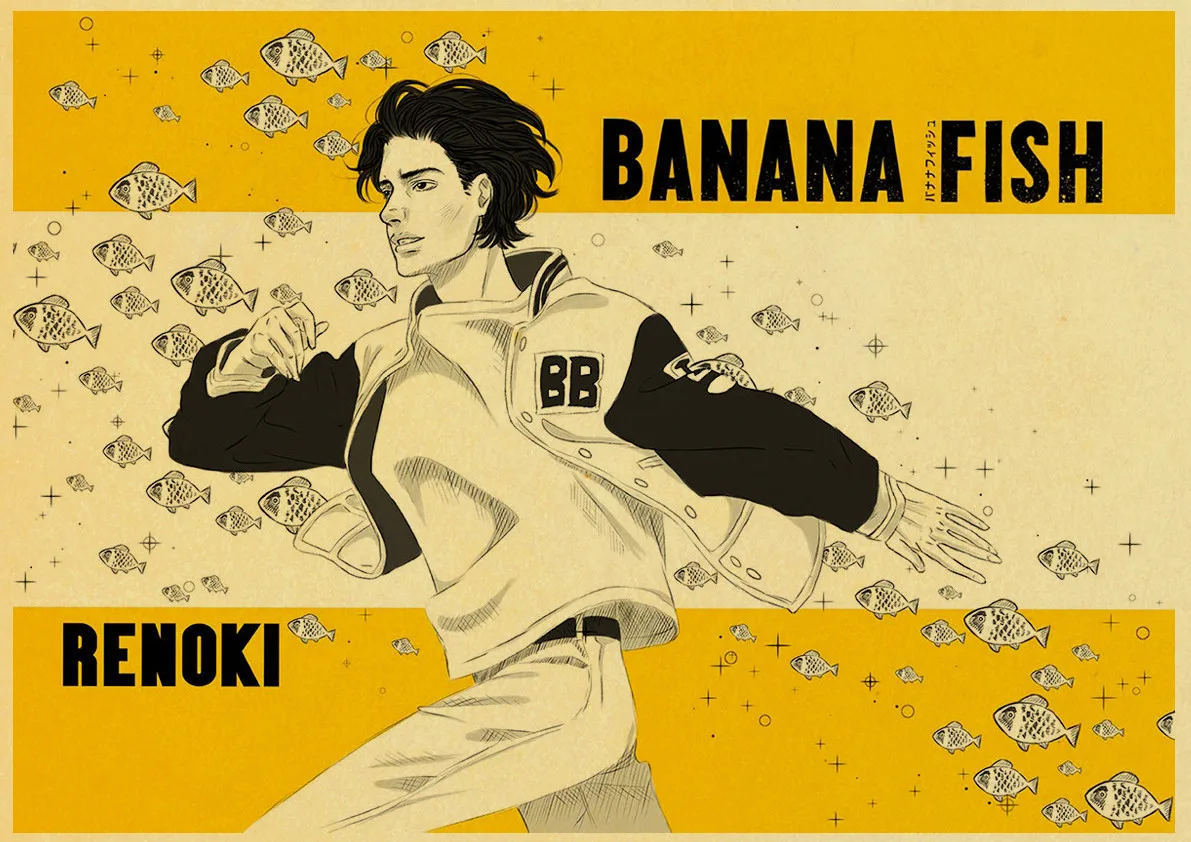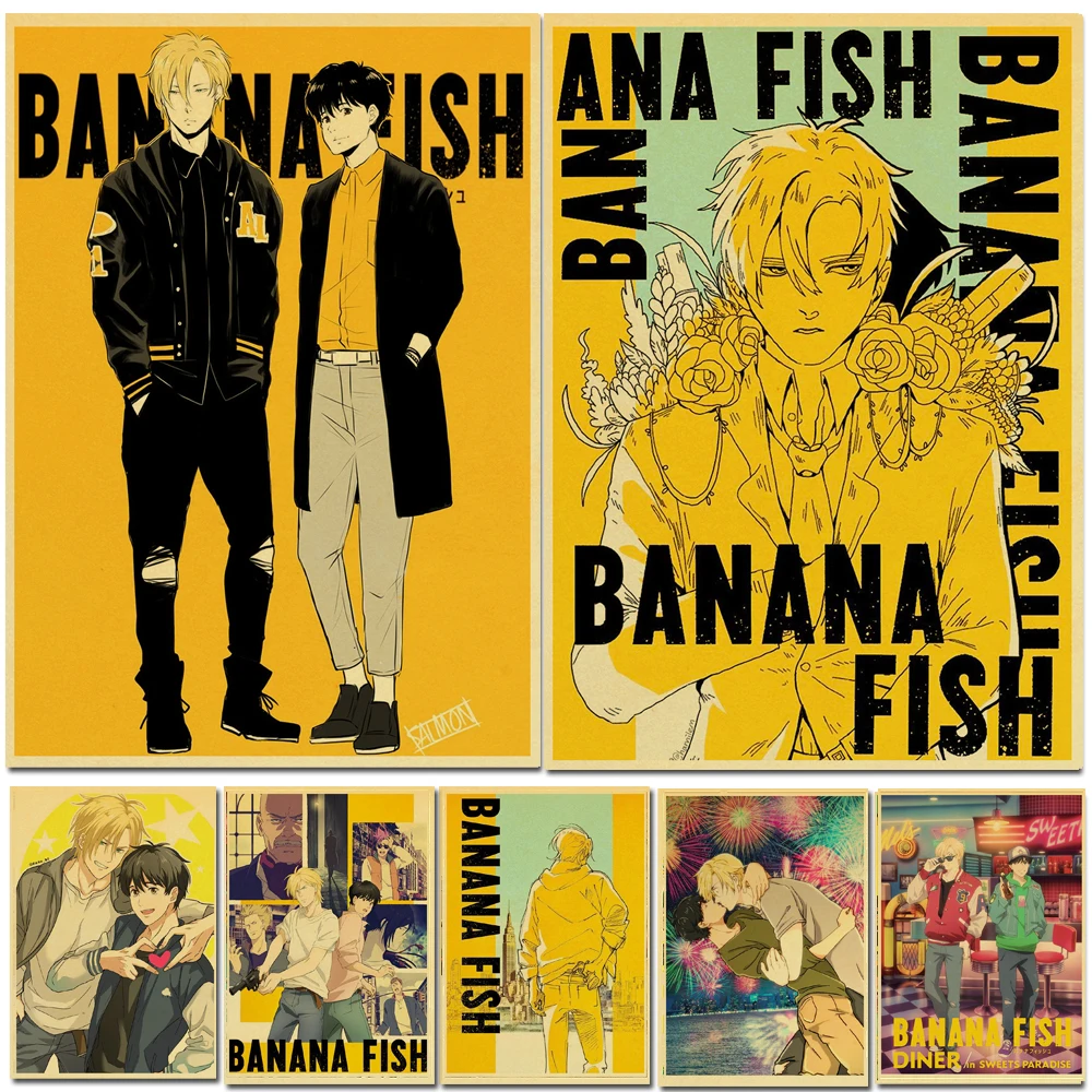 Японское аниме банан рыба игра мультфильм Ретро Живопись винтажная Настенная картина плакат из крафт-бумаги настенные наклейки украшение дома подарок