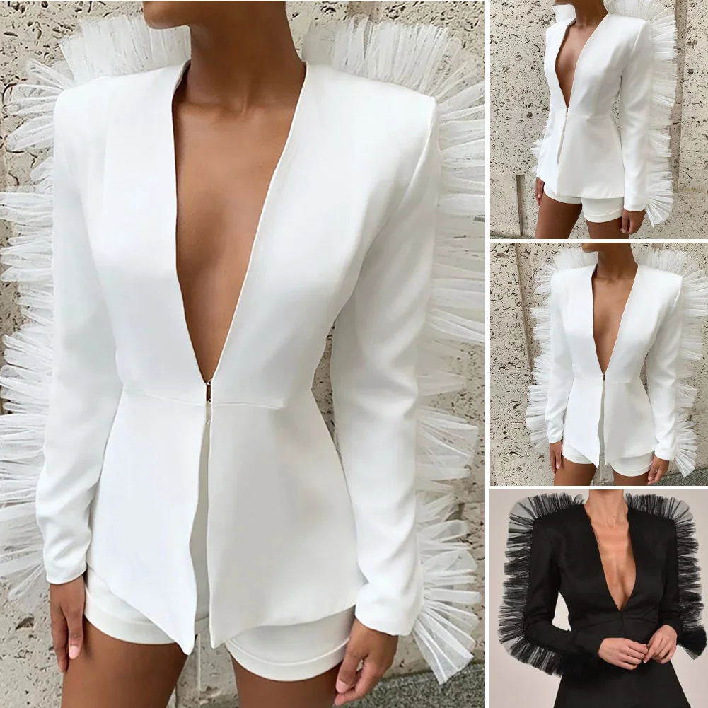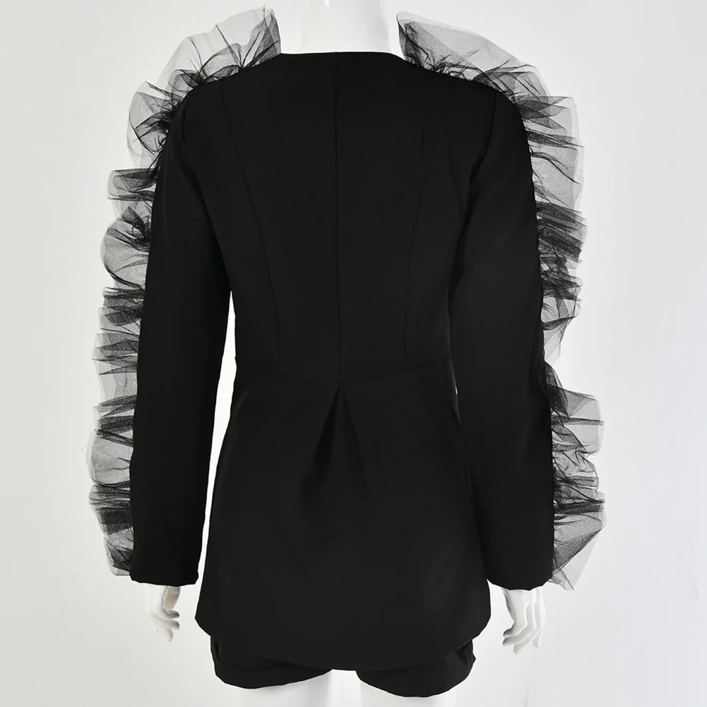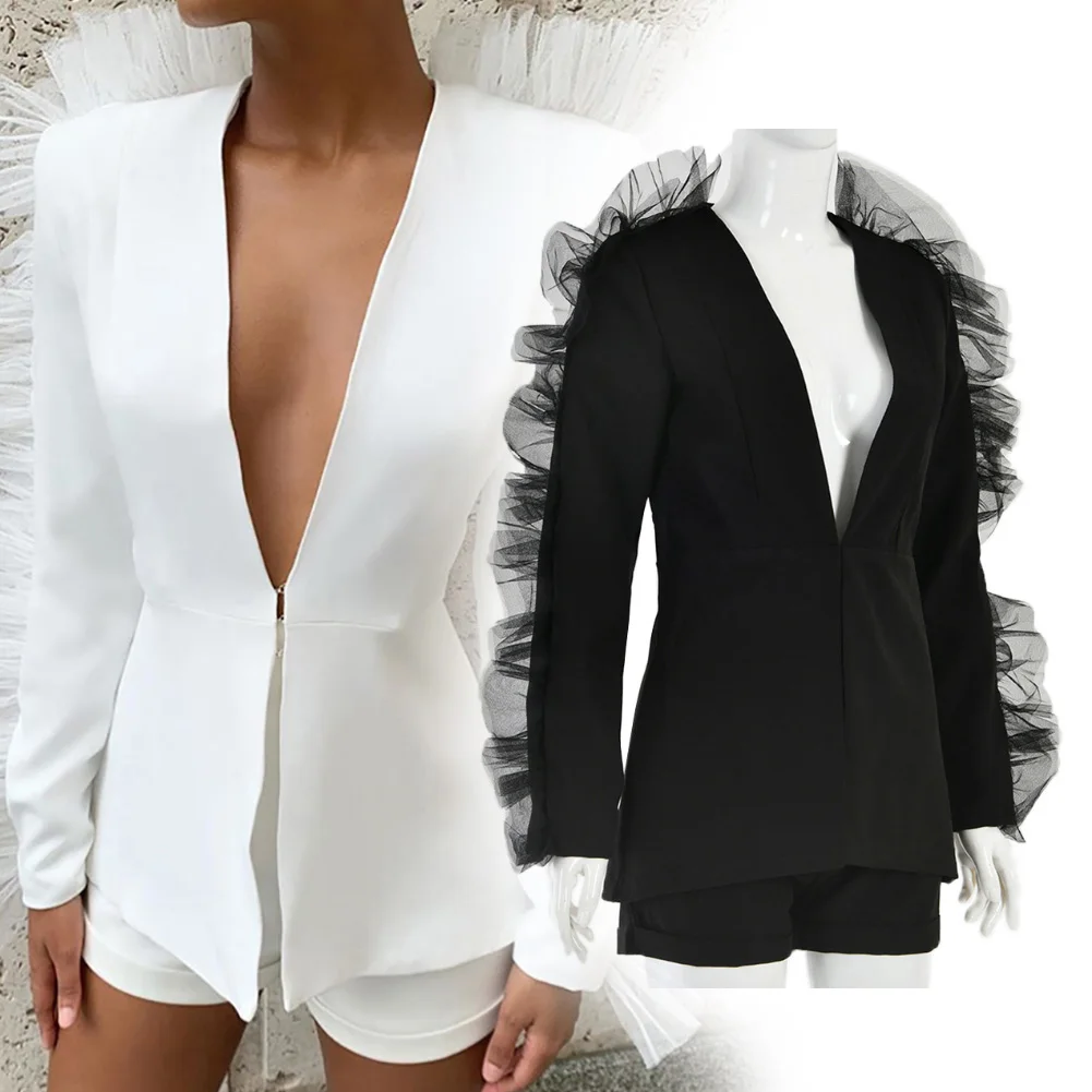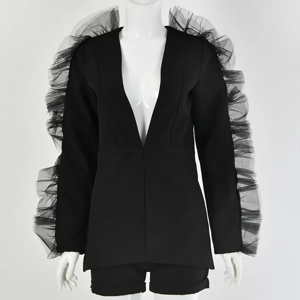 Женский однотонный костюм с длинным кружевным рукавом, облегающее пальто и шорты, одежда для выступления на сцене, новинка 2020, женский модный однотонный костюм, 2 шт.