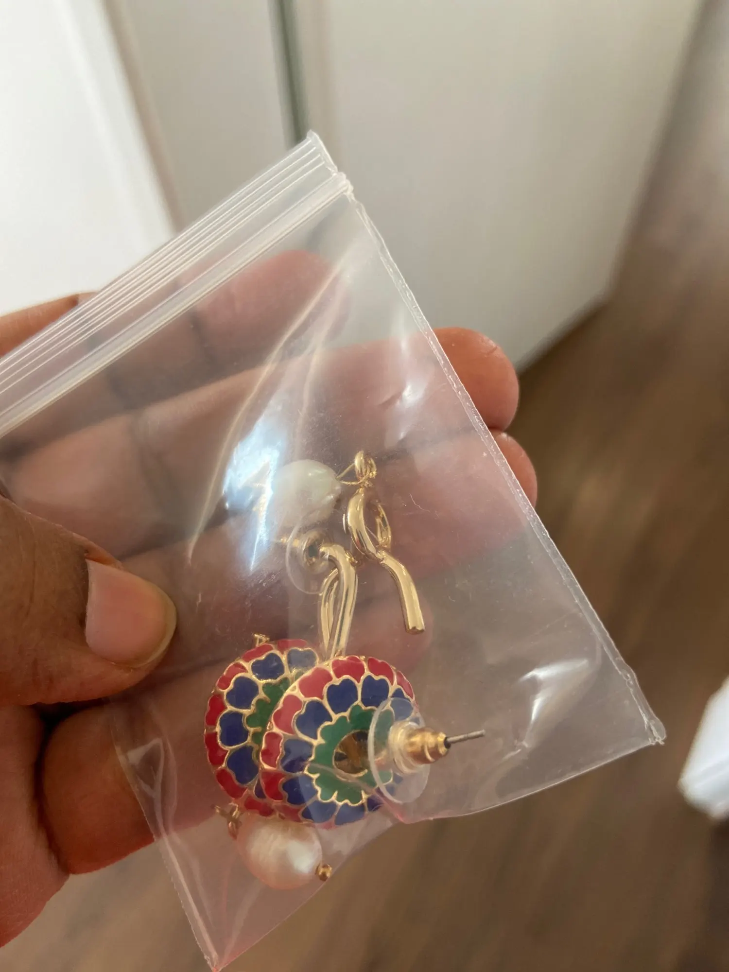 серьги потрясные, но... очень маленькая дужка, серьги падают с уха. судя по всему-это проблема всех "гвоздиков" из Китая. шли около 2 мес. не отслеживались. была бы другая застежка- взяла бы всех цветов)))
