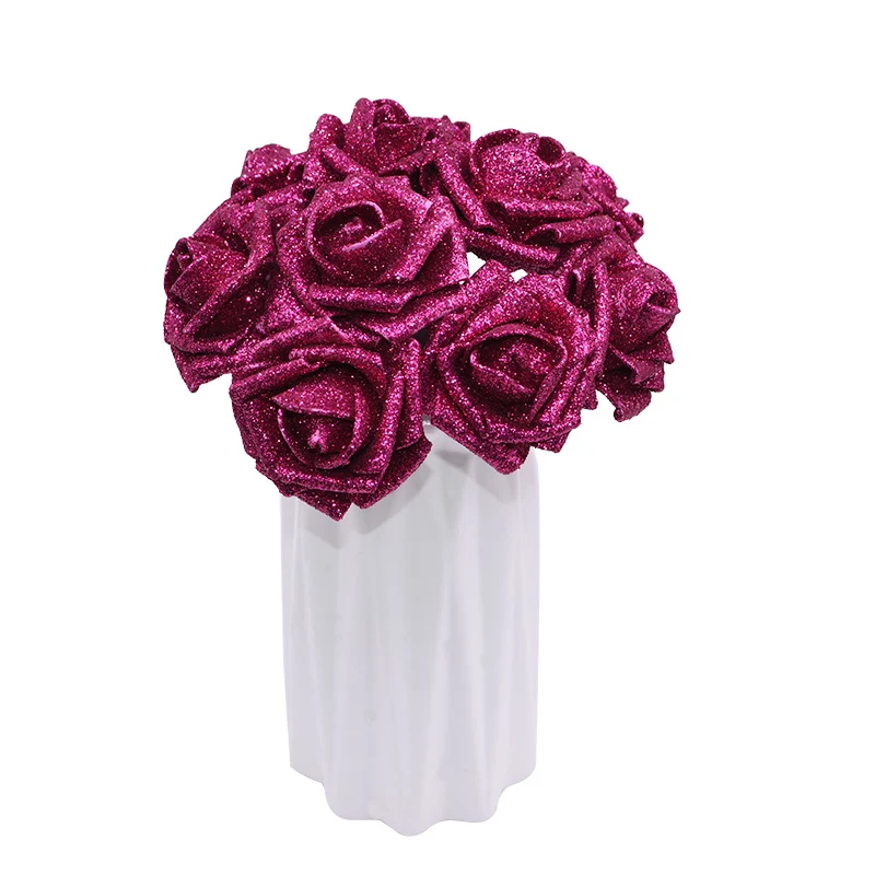 10P 6 см блестящий цветок Роза пенопластовый цветок искусственный цветок букет Рождество Свадьба Вечеринка дома искусственное ремесло