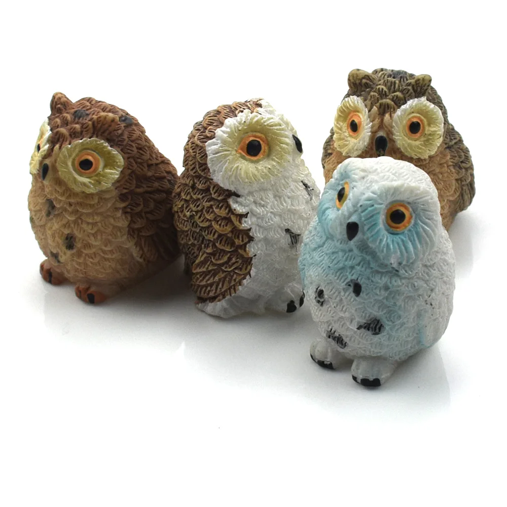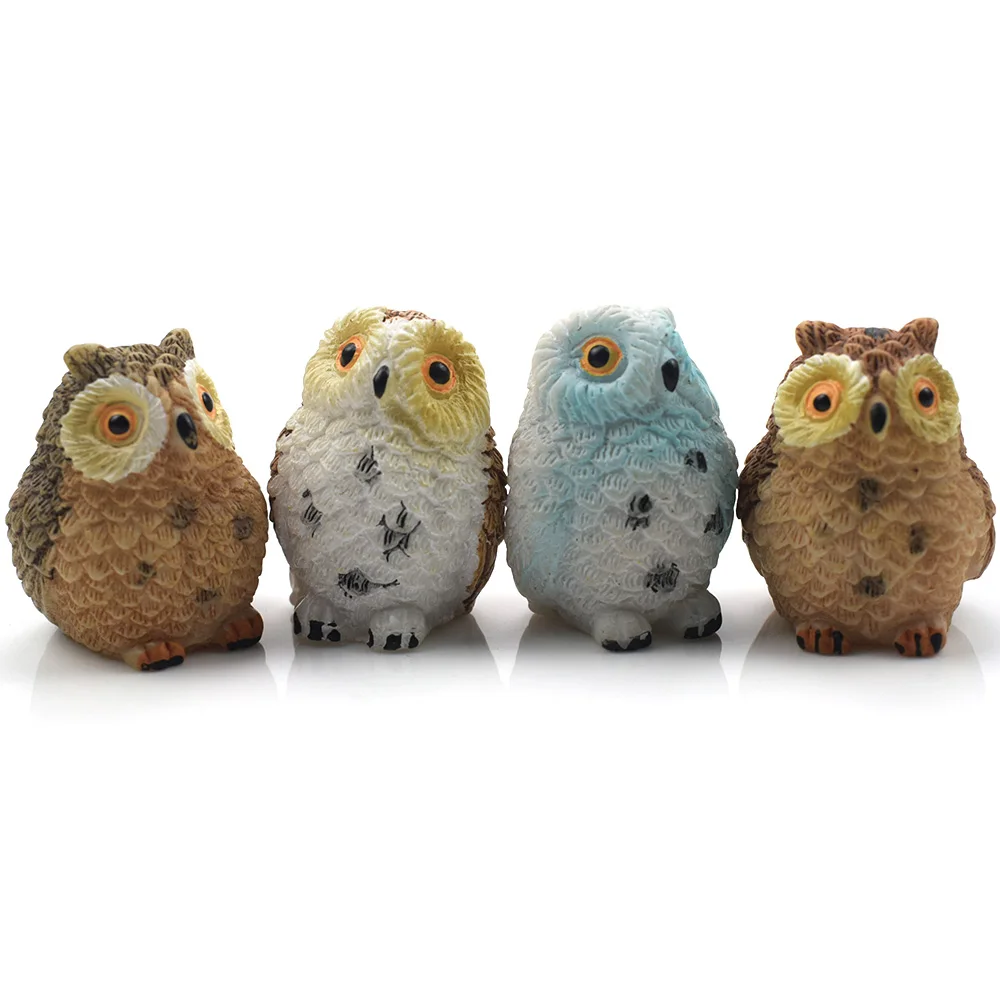 Фигурки милые совы, животные, смола, горшки миниатюрные фигурки для изготовления бонсай, домашнее сказочное садовое украшение, украшения для террариума, 4 шт.